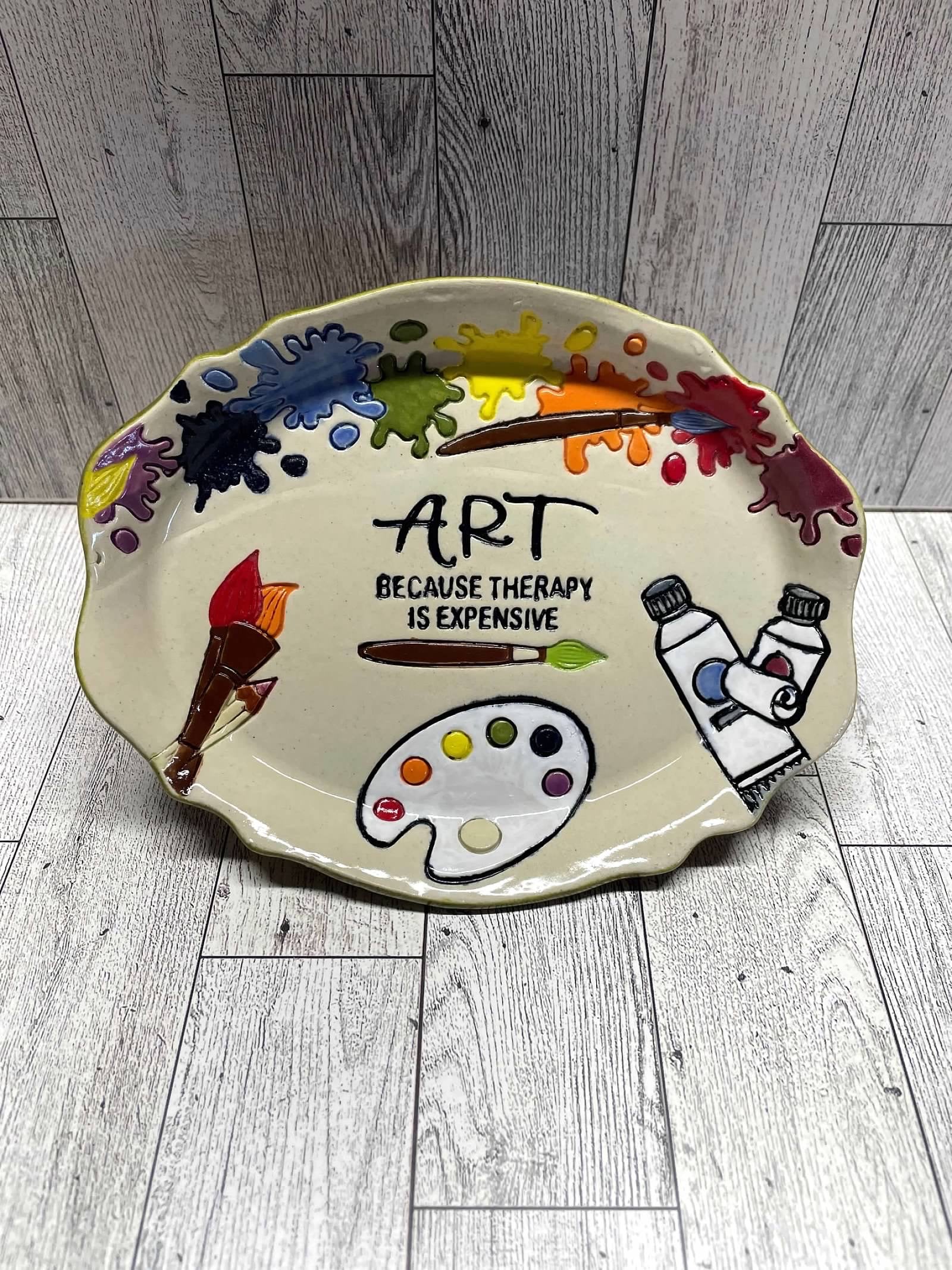 Paint pallet pottery stamp from the November 2023 mystery box, creative themed. 3" size was in the deluxe box.