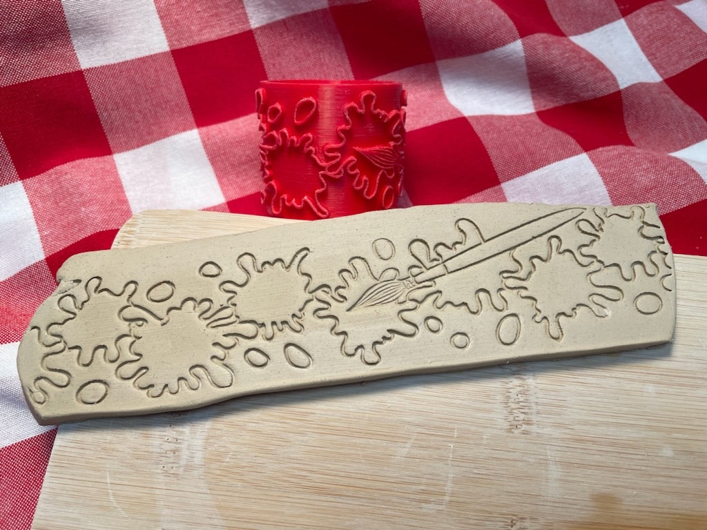 Paint Splatter with paint brush 2" Texture Roller - November 2023 mystery box, repeating pattern