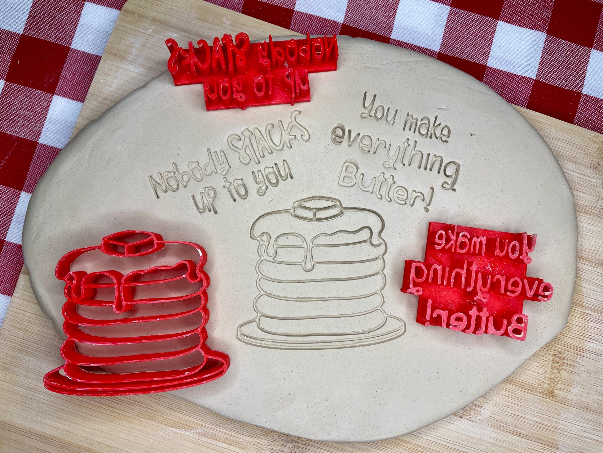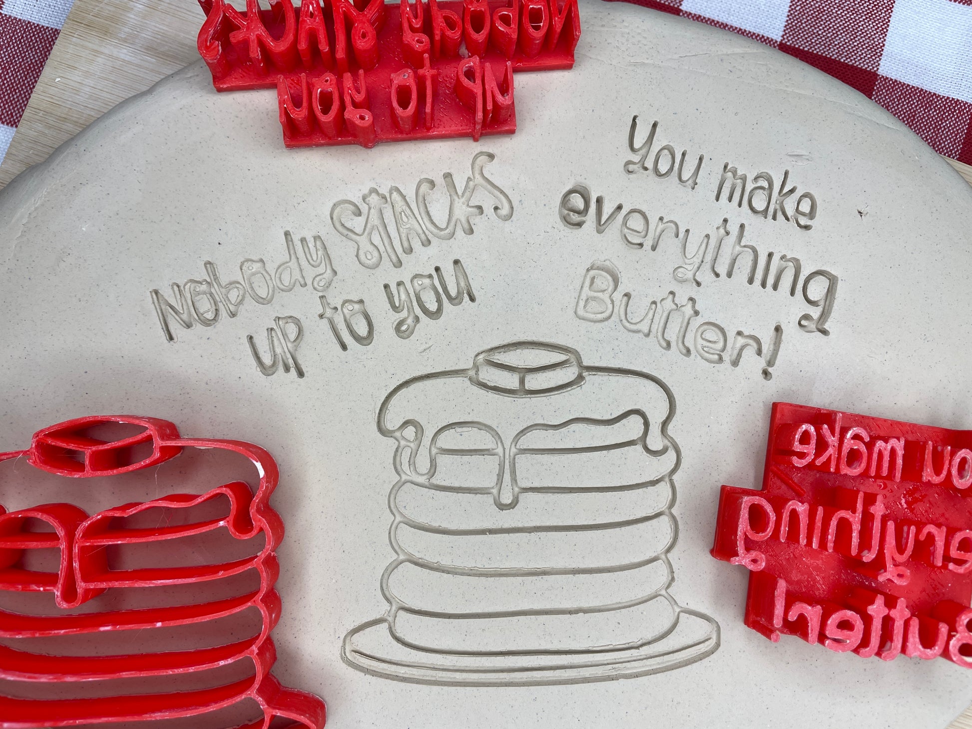Pancakes stamp, "Nobody STACKS up to you" and "You make everything Butter!" Word Stamps, Each or Set - December 2024 Valentines - Punny Food themed Mystery Box, multiple sizes available