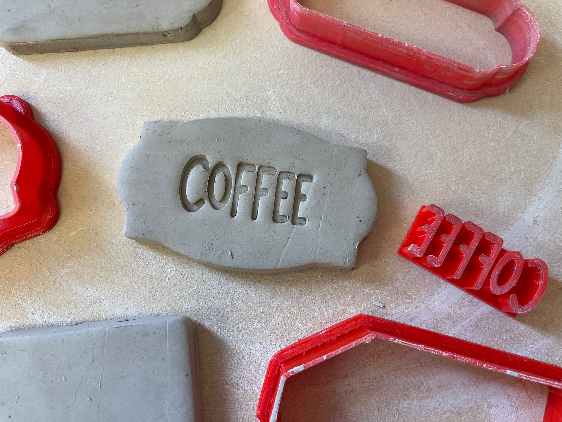 Baking and Pantry Words Pottery Stamps - Flour, sugar, coffee, etc, 3D Printed, each or set