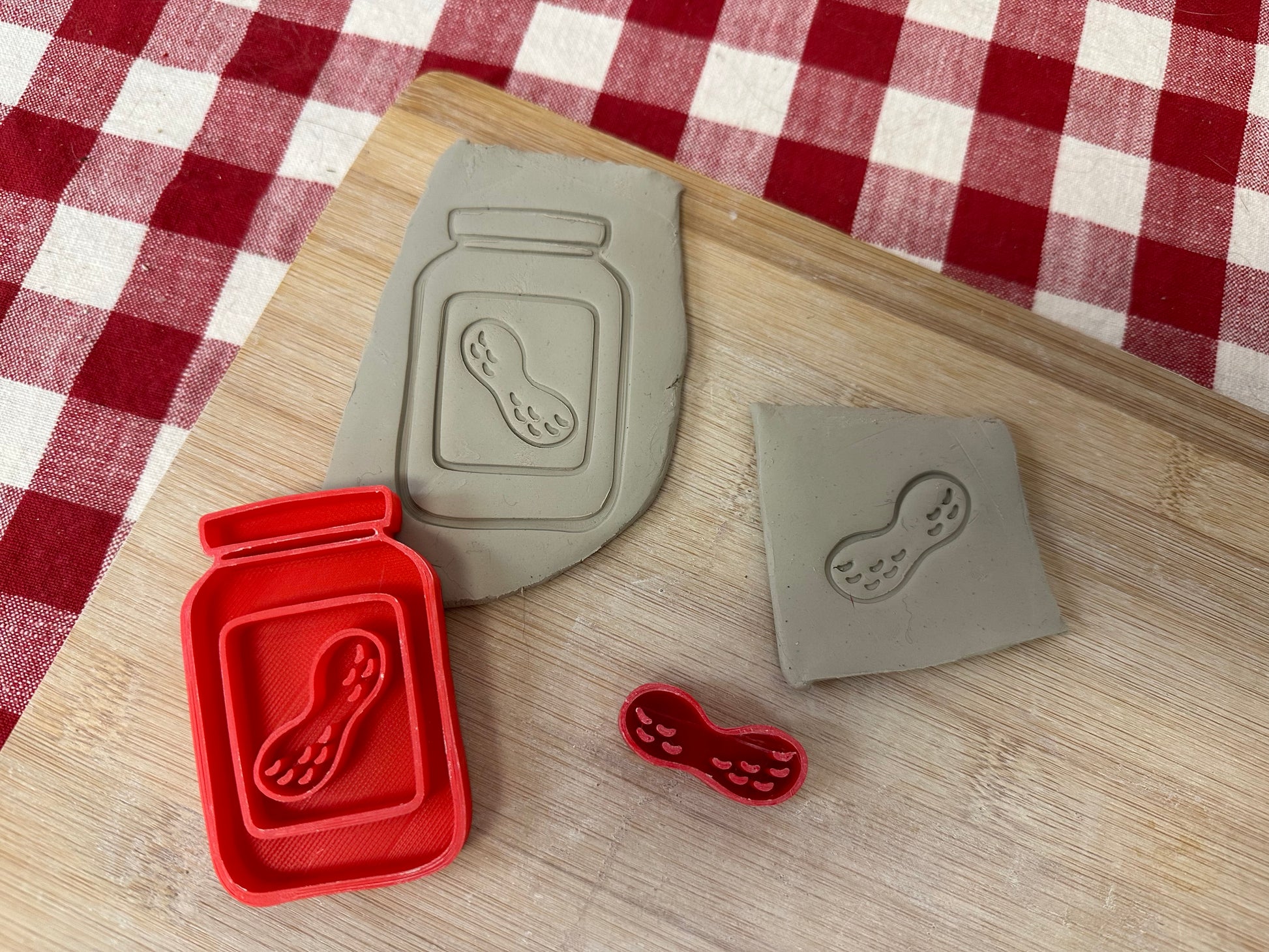 Peanut Butter Jar & Peanut pottery stamp - Each or Set, multiple sizes available