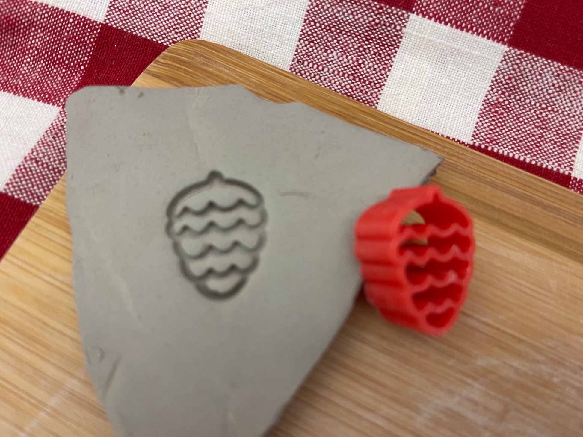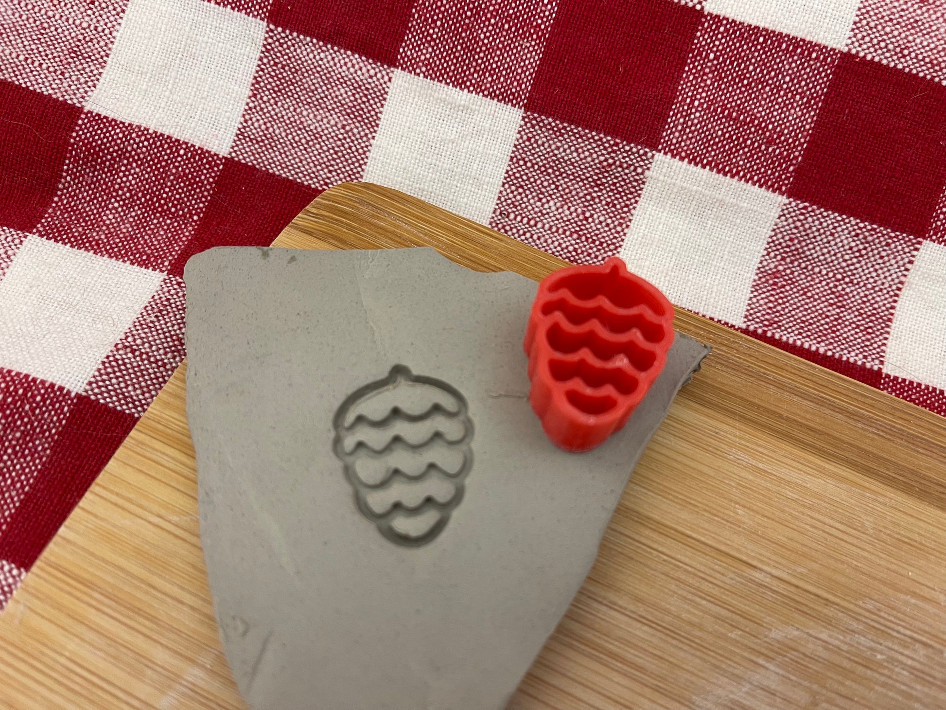 Pinecone Mini Pottery Stamp - February 2022 Stamp of the Month, plastic 3D printed, multiple sizes