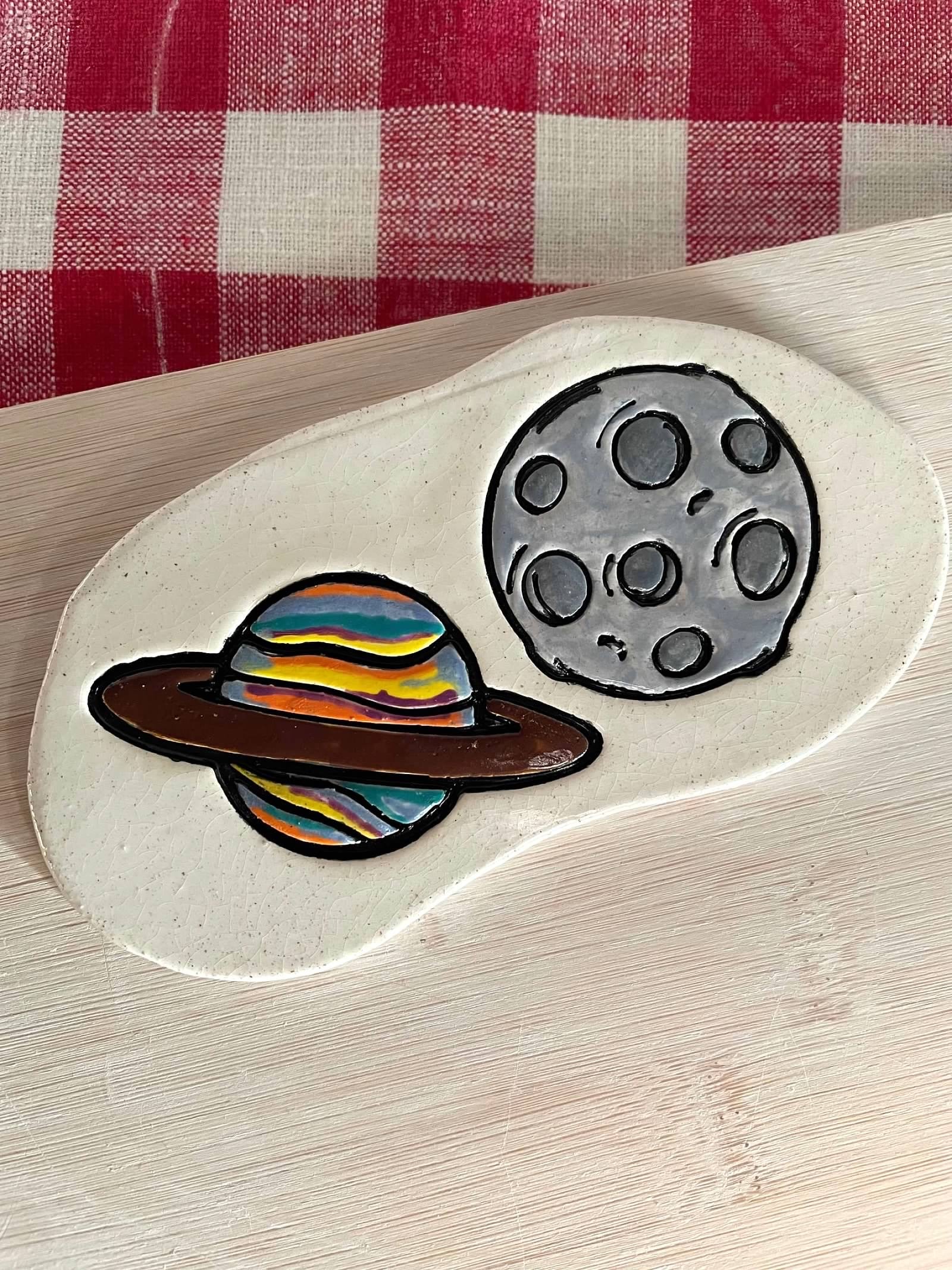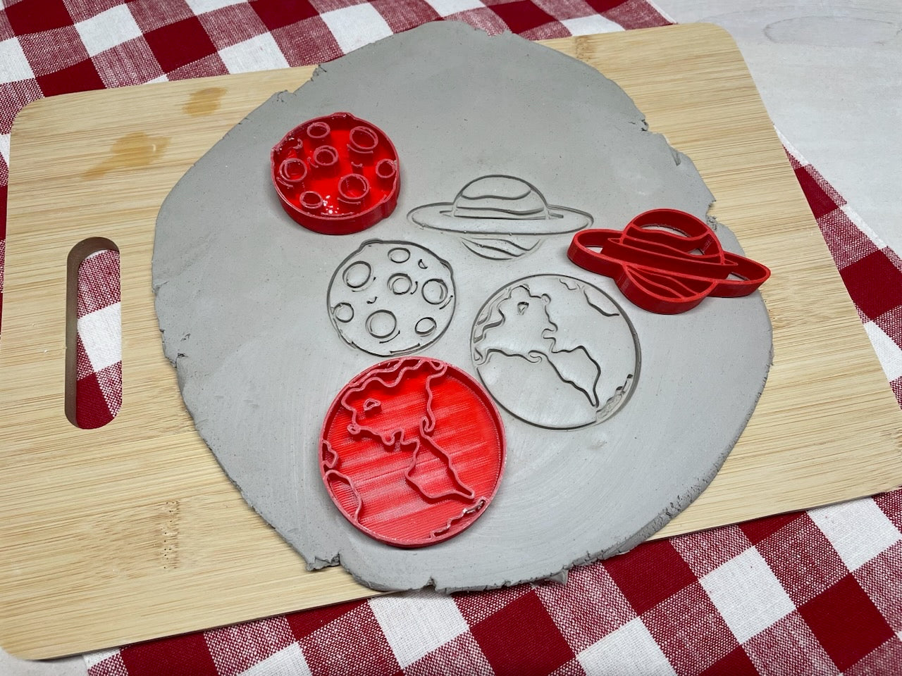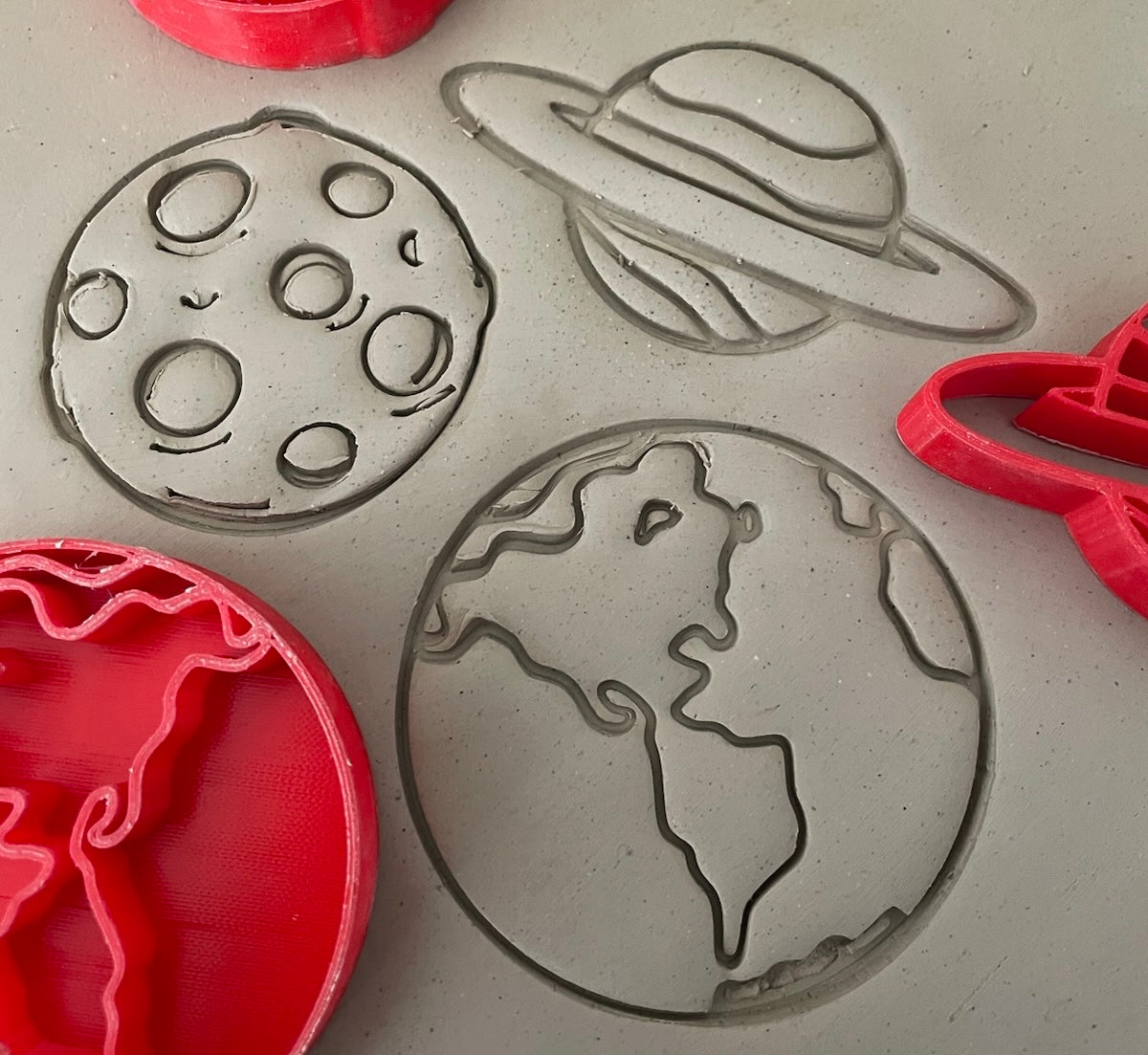 Planet set of 3 includes Earth, Saturn, and the moon design that are from the October 2023 mystery box. Sizes range from 2" 3". Earth and Saturn were in the deluxe box while the moon was in both deluxe and basic box.