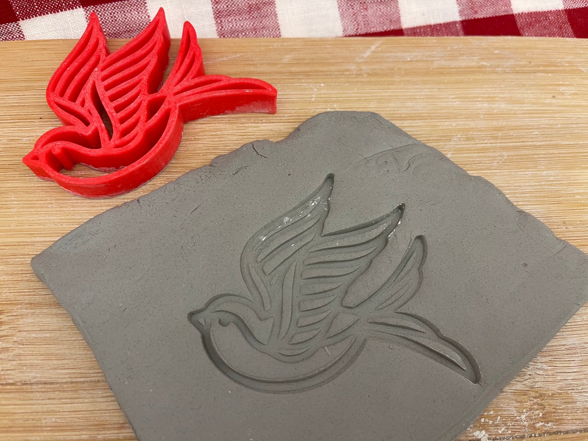 Traditional Style Bird Pottery Stamp - Pottery Tool, plastic 3d printed, multiple sizes available