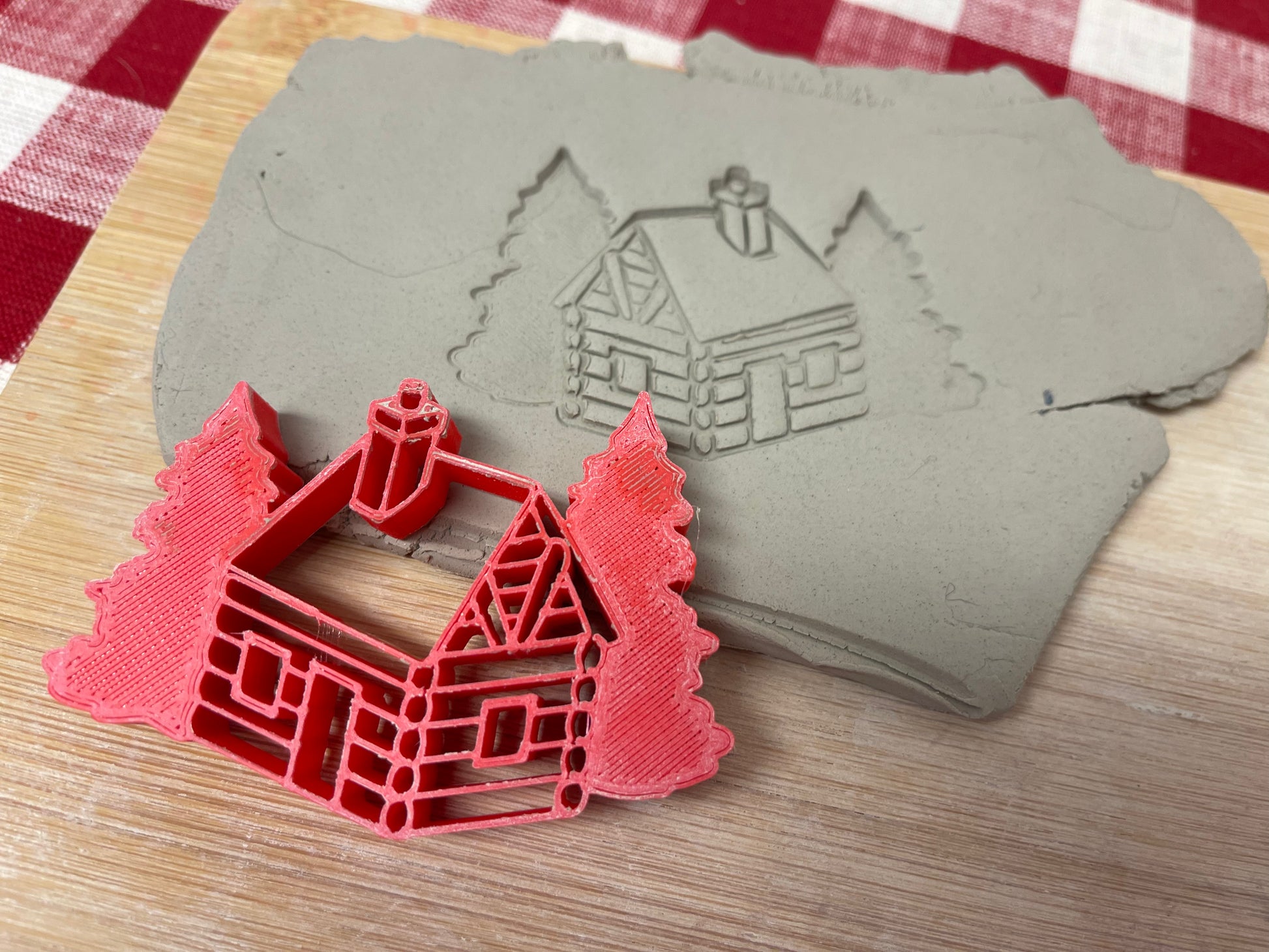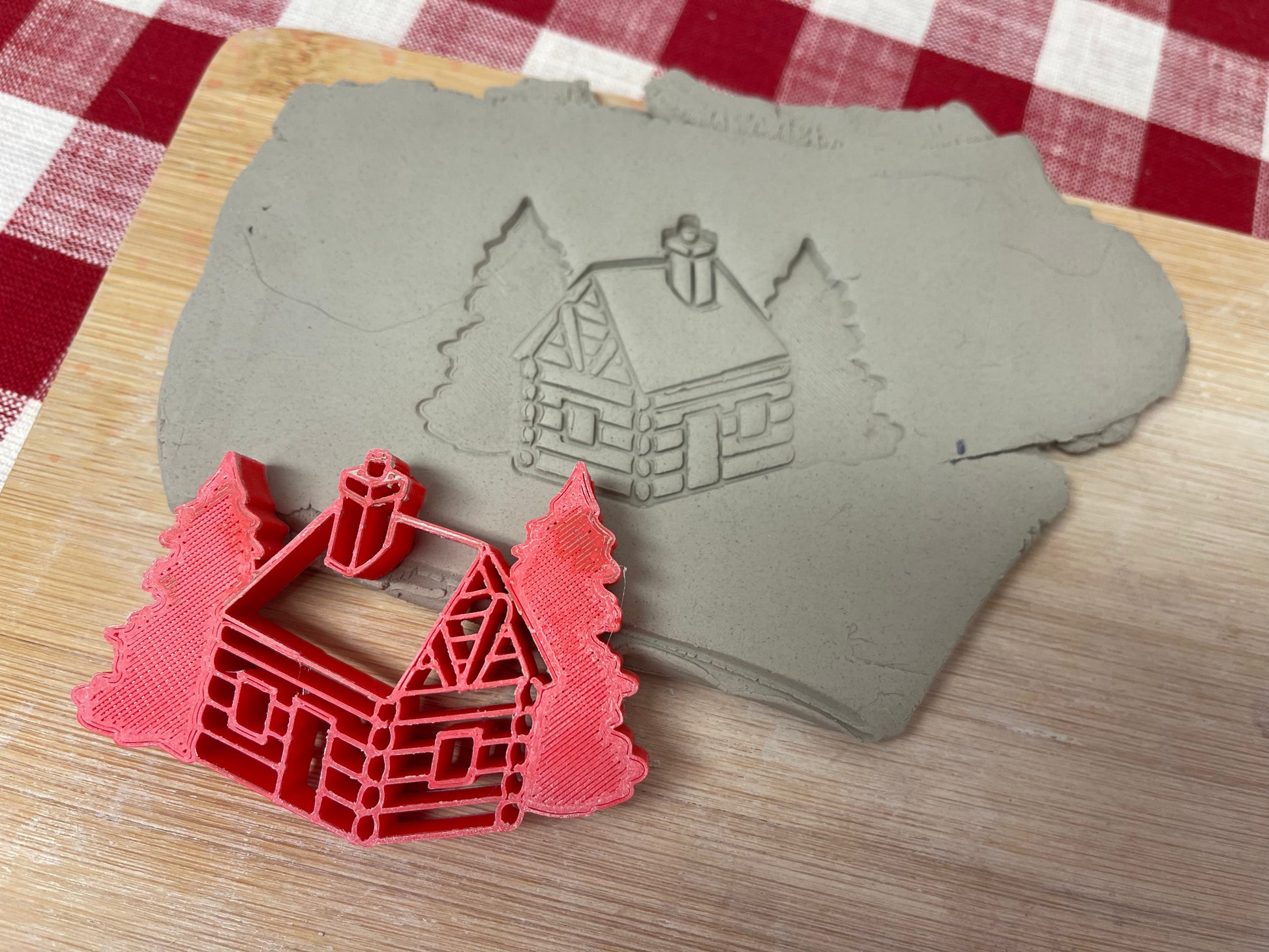 Cabin pottery stamp - from the March 2023 mystery box, multiple sizes available