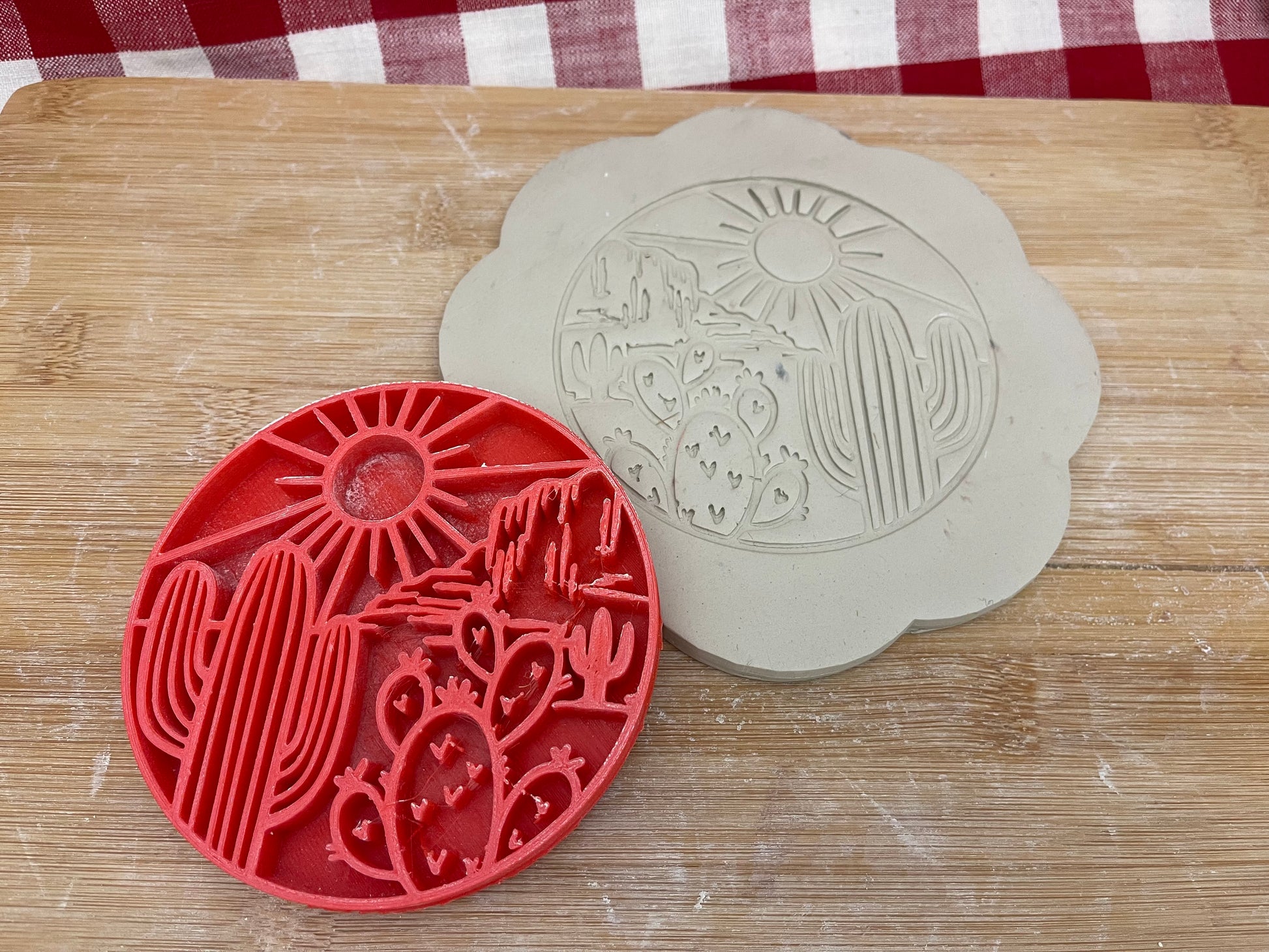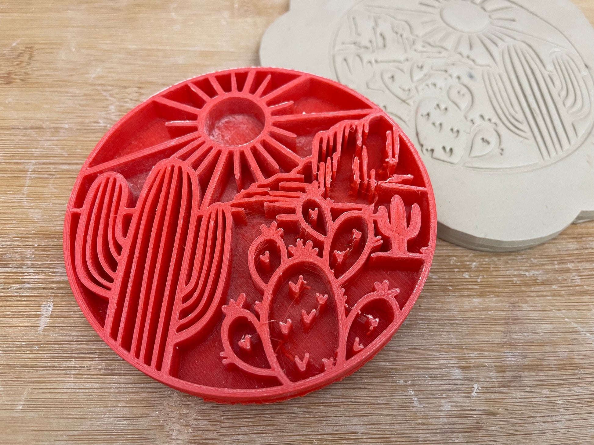 Cactus Desert Scene Pottery Stamp - plastic 3d printed, multiple sizes available