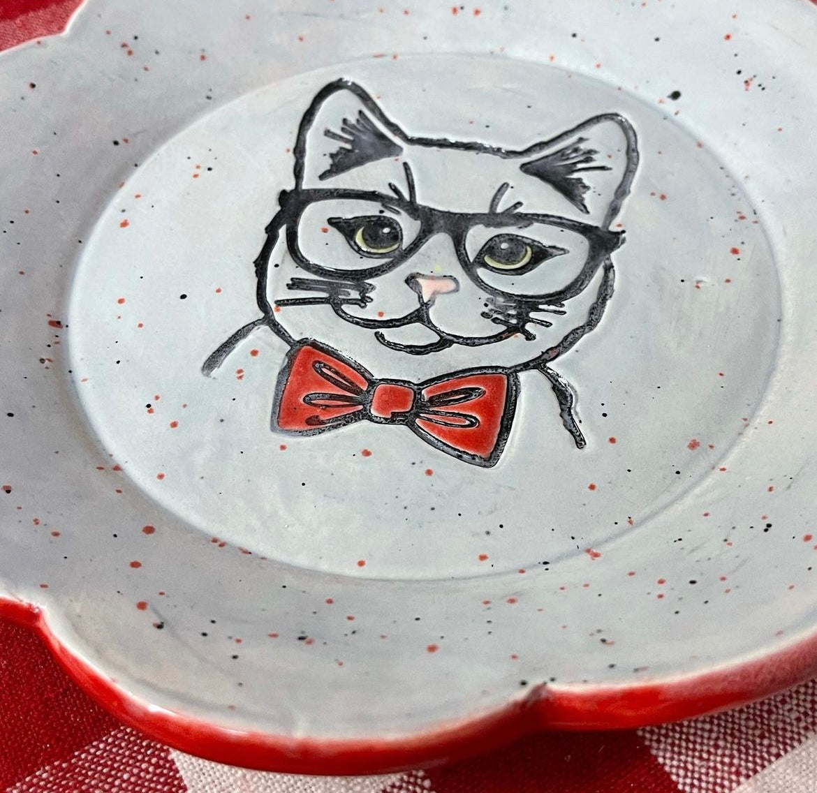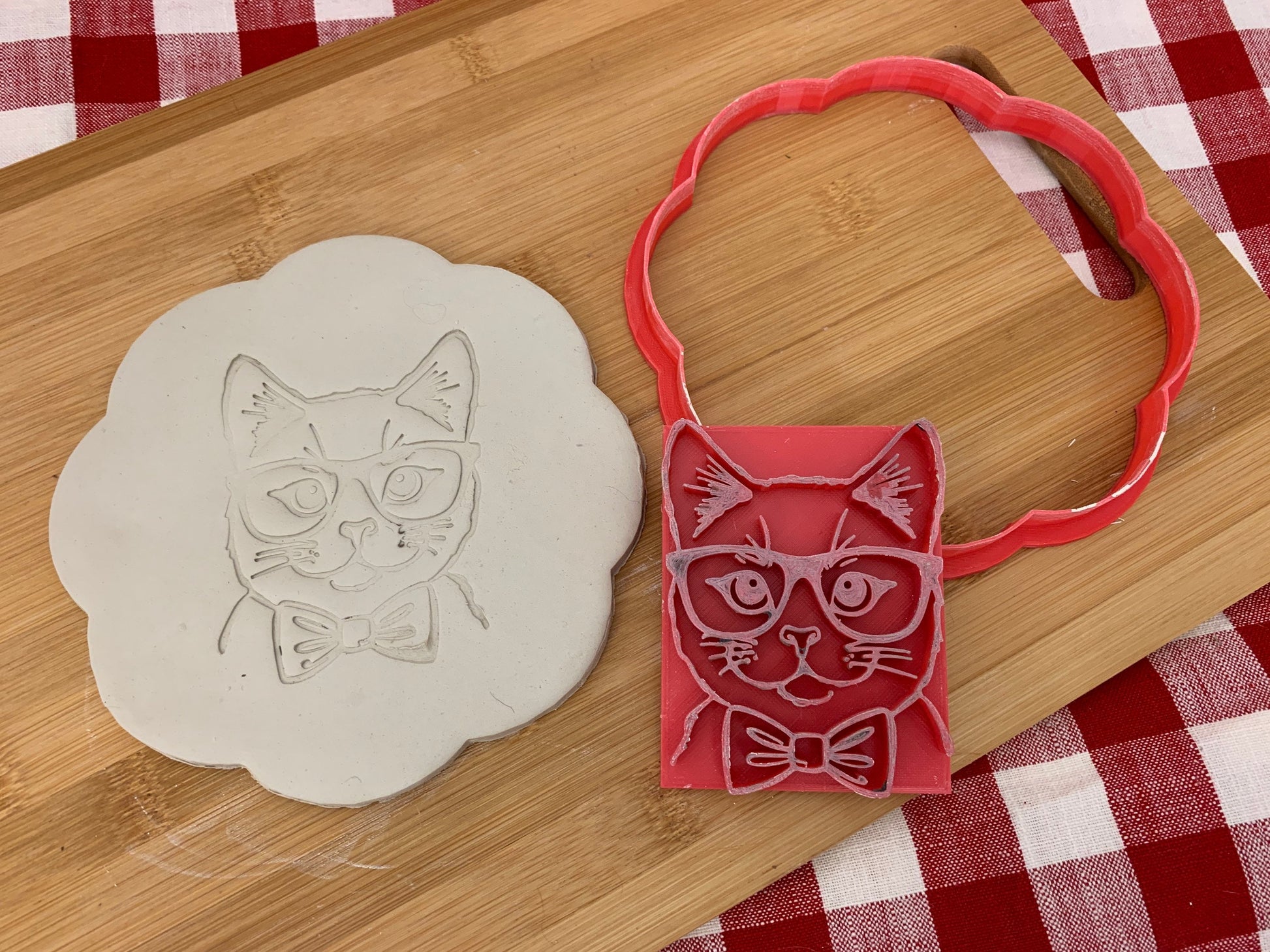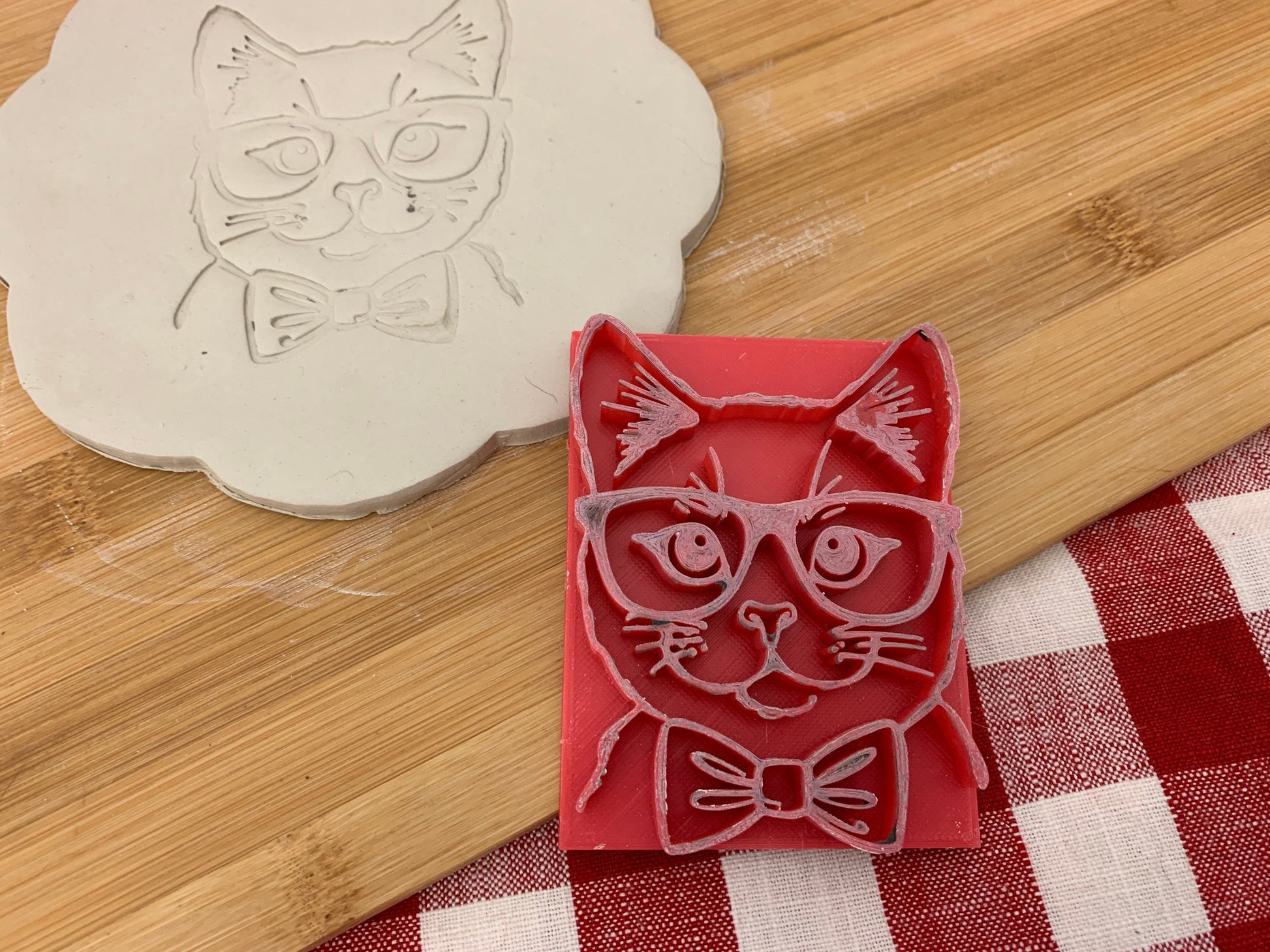 Cat Face w/ Bowtie and Glasses - plastic 3D printed, multiple sizes