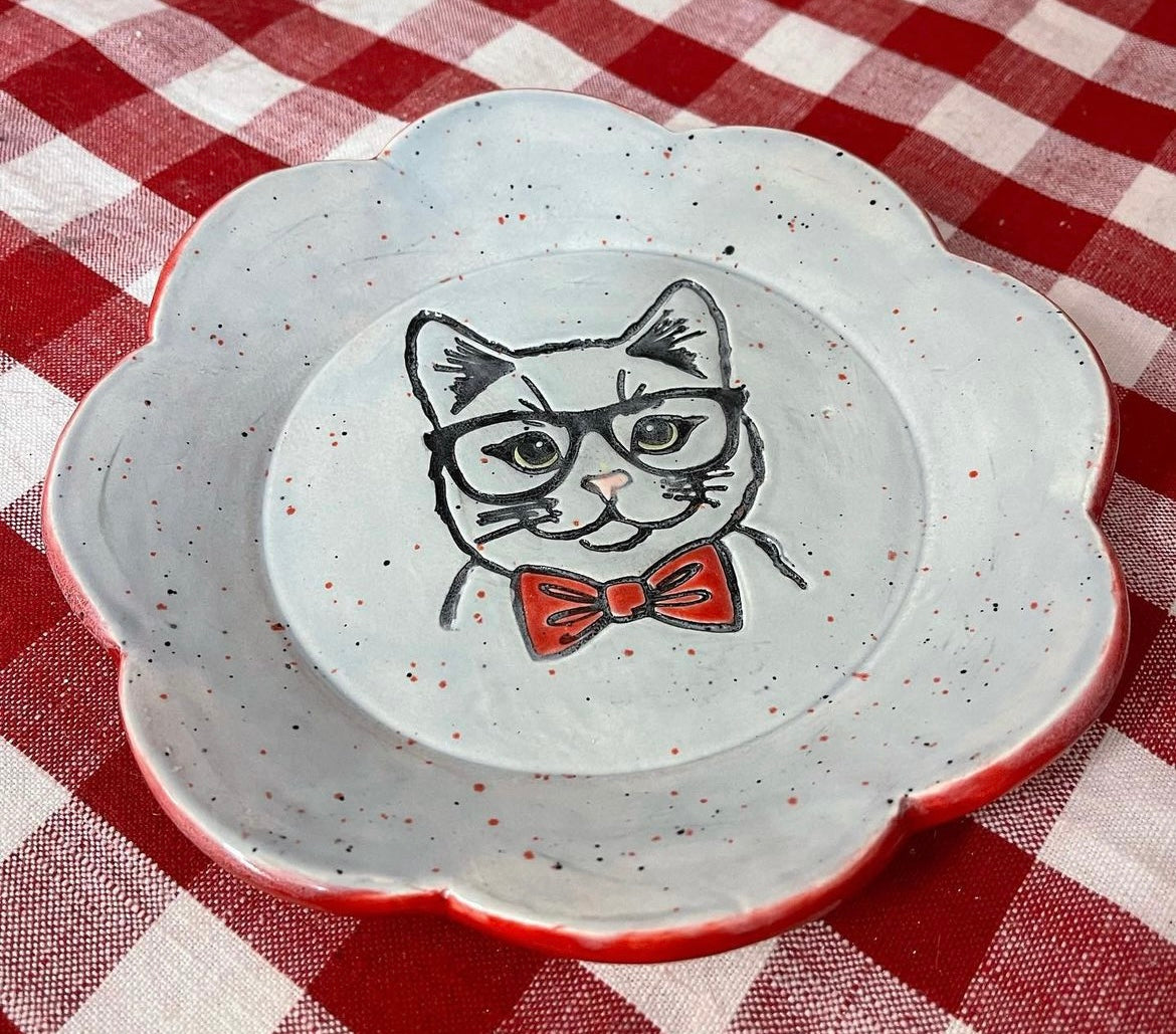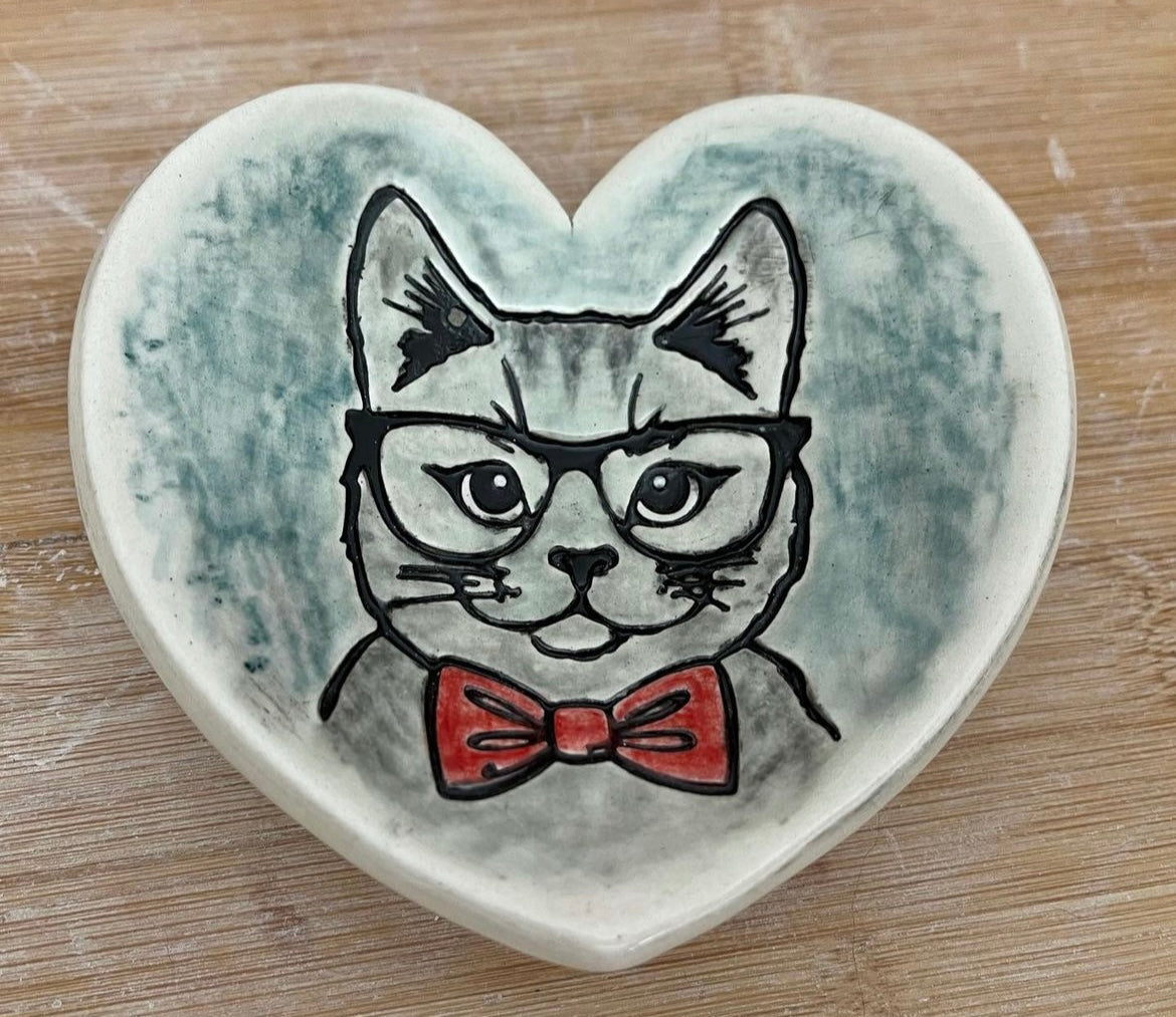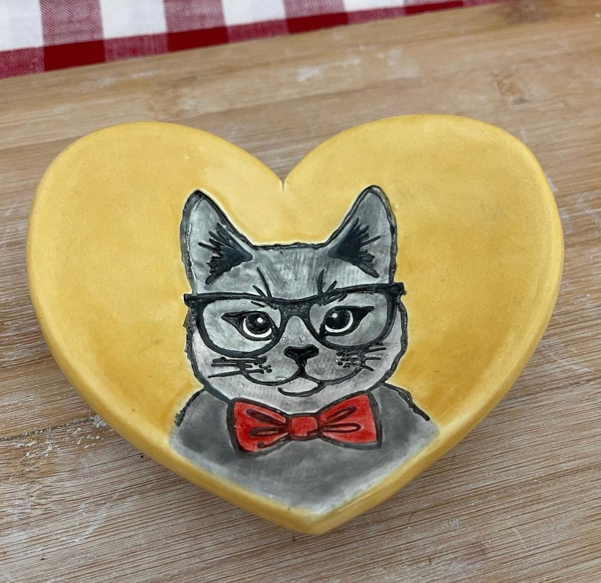 Cat Face w/ Bowtie and Glasses - plastic 3D printed, multiple sizes