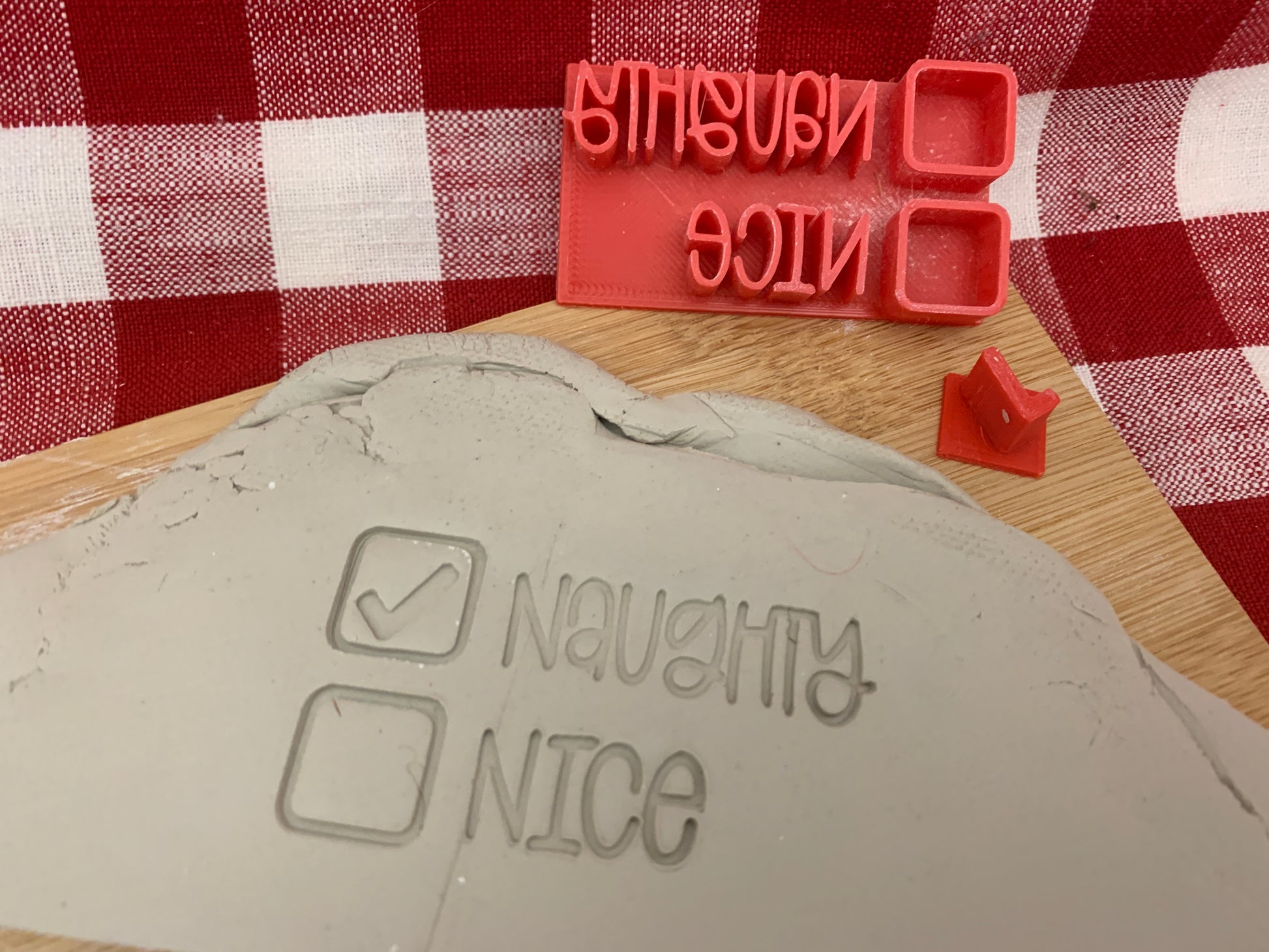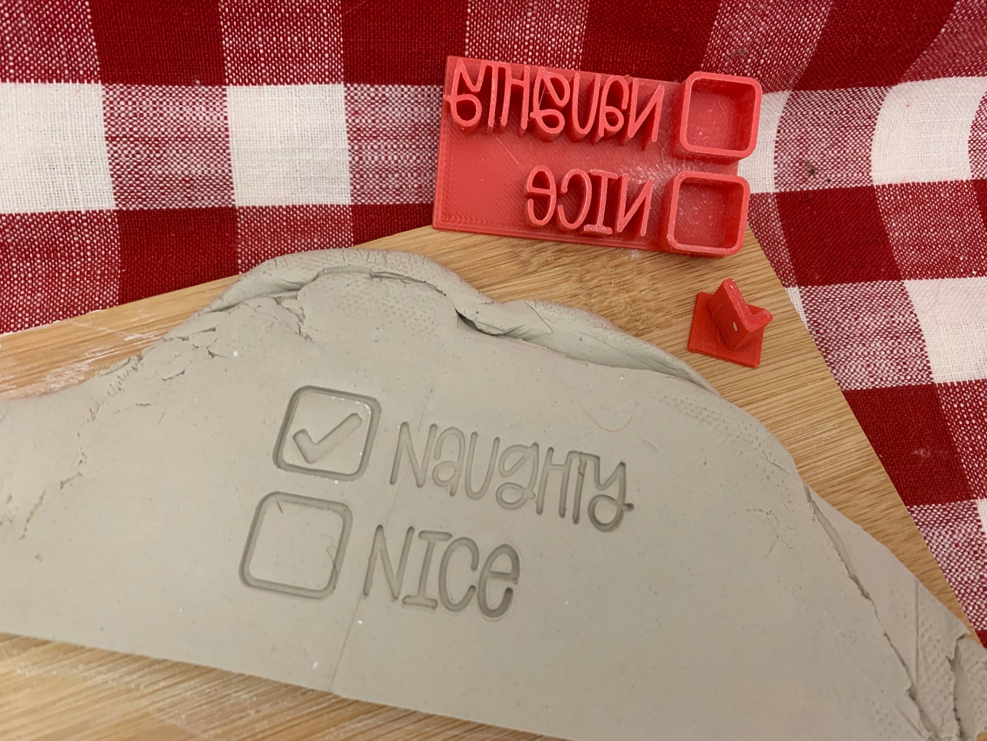 Christmas casual "Naughty/Nice" checklist word stamp - plastic 3D printed, multiple sizes