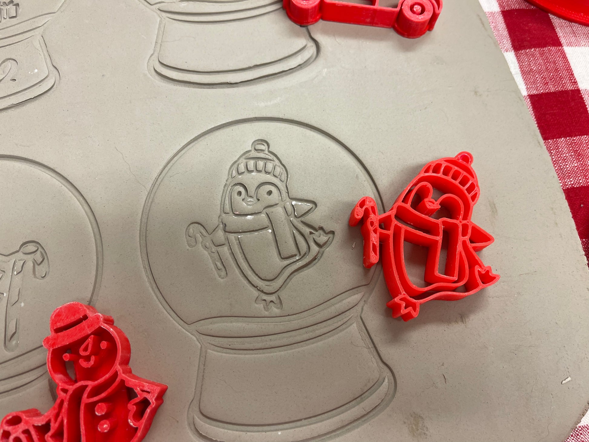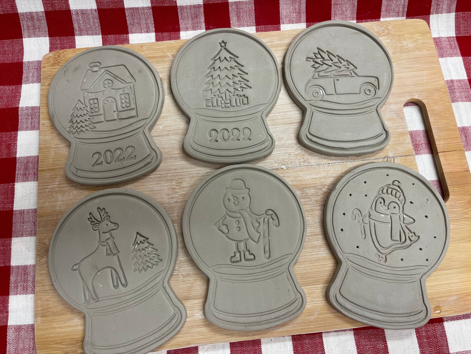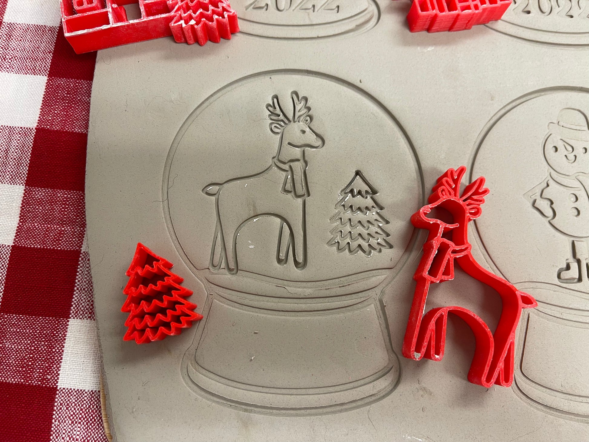 Pottery Stamp, Christmas Snow Globe designs, with multiple designs and optional cookie cutter ornament, as a set or individual - multiple sizes