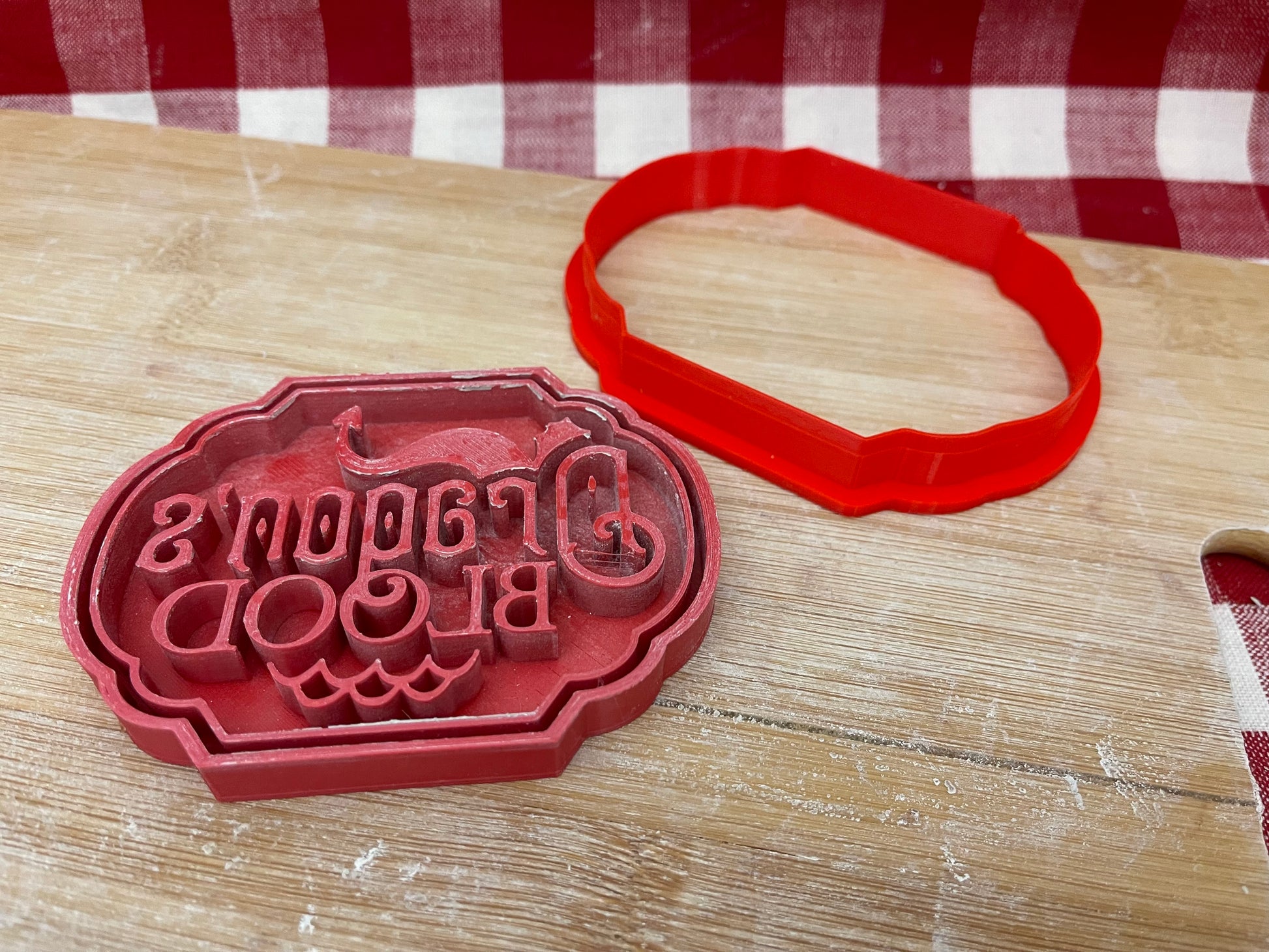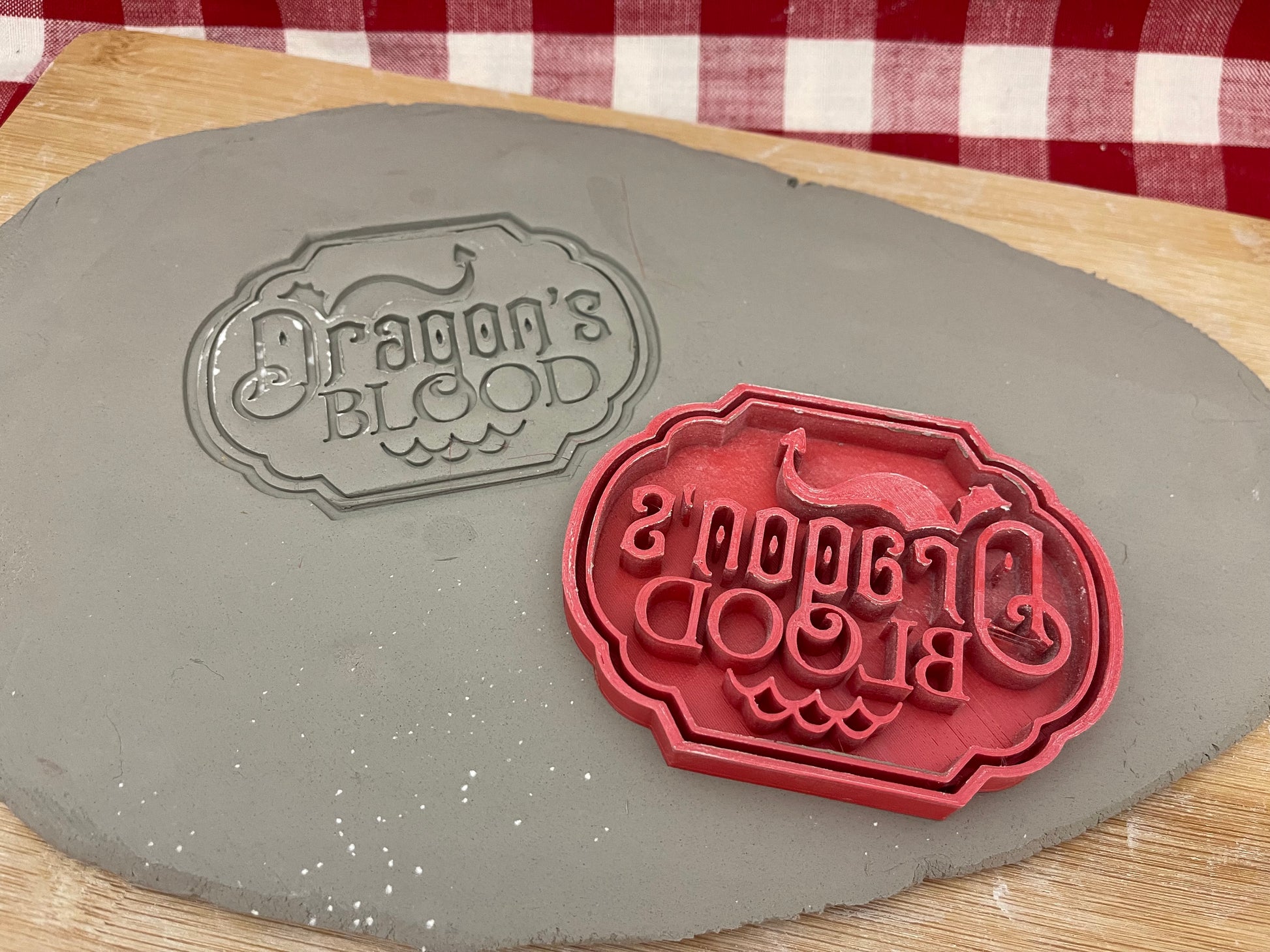 "Dragon’s Blood" word stamp w/ optional ornament cutter - plastic 3d printed, multiple sizes