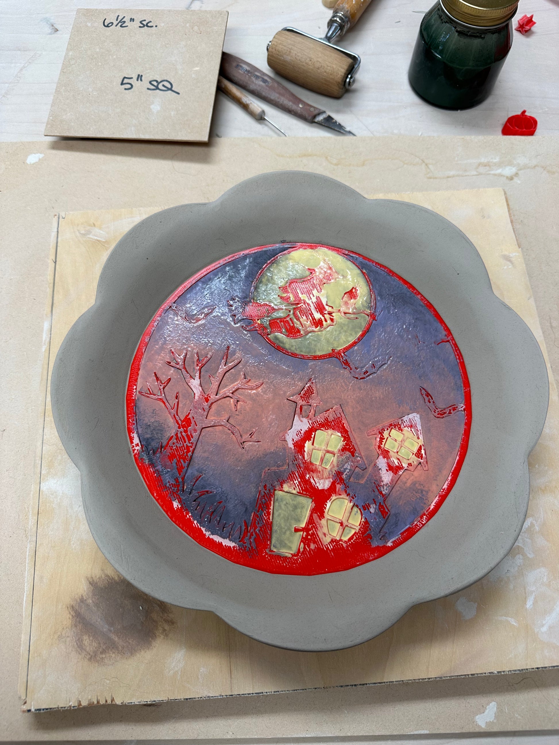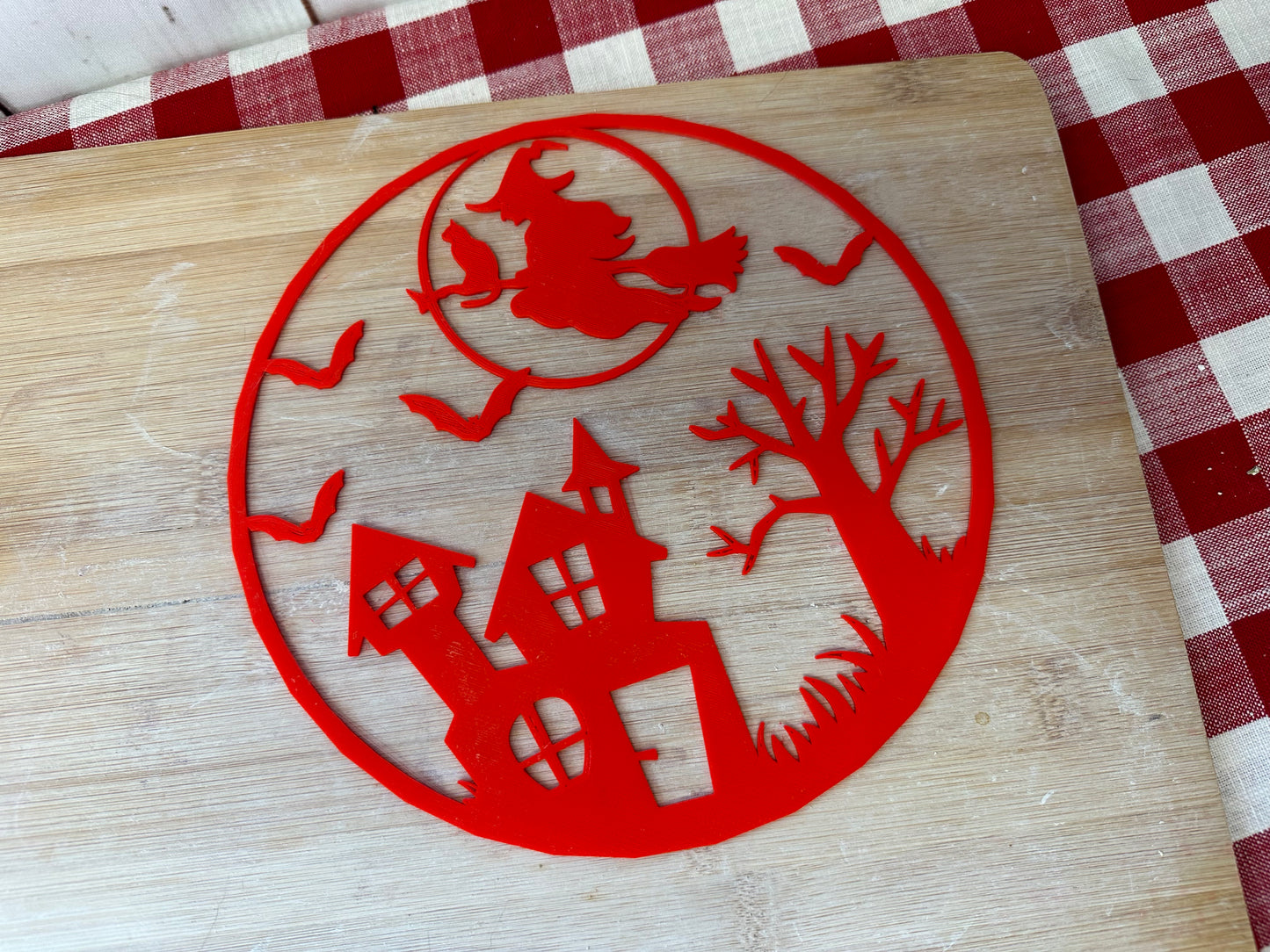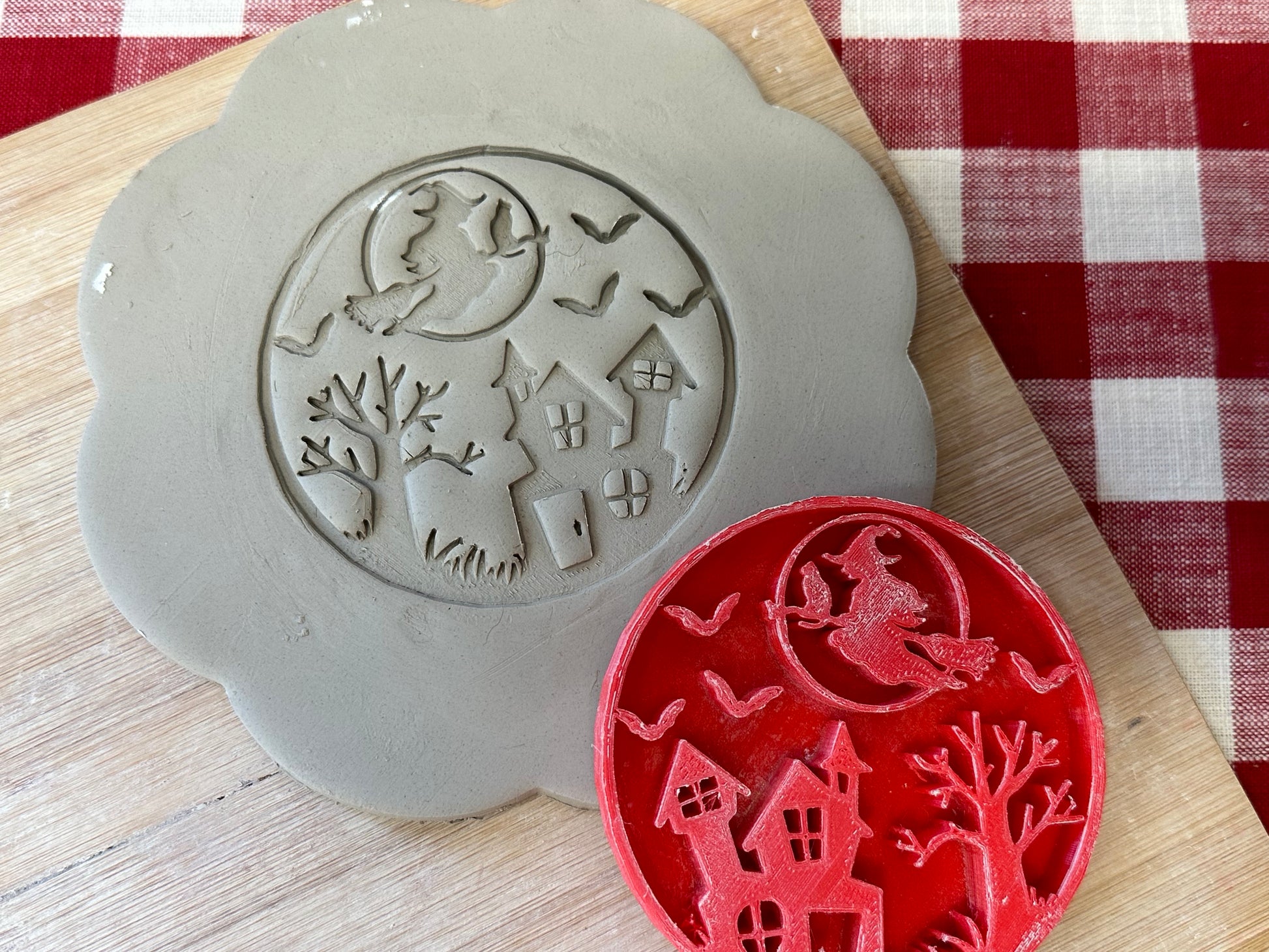 Flying Witch, Halloween Scene Pottery Stamp or Stencil - plastic 3D printed, multiple sizes available