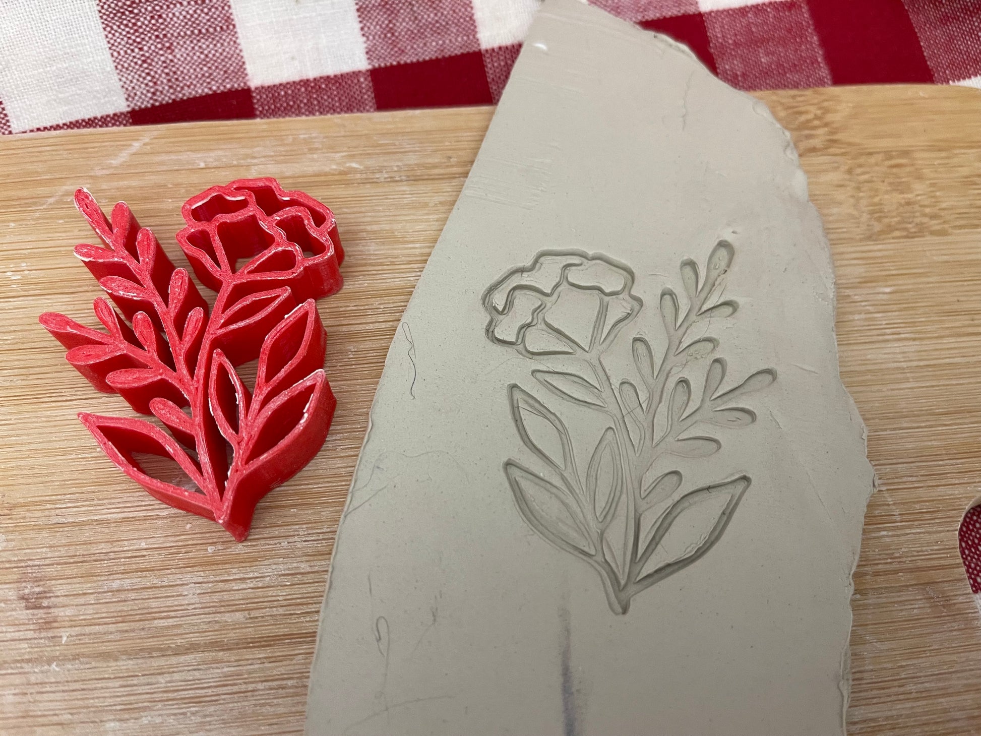 Plastic stamp for pottery use. Measurements are approximate and taken at the widest location. Choose size in drop down menu. For custom sizes not shown, please contact me.