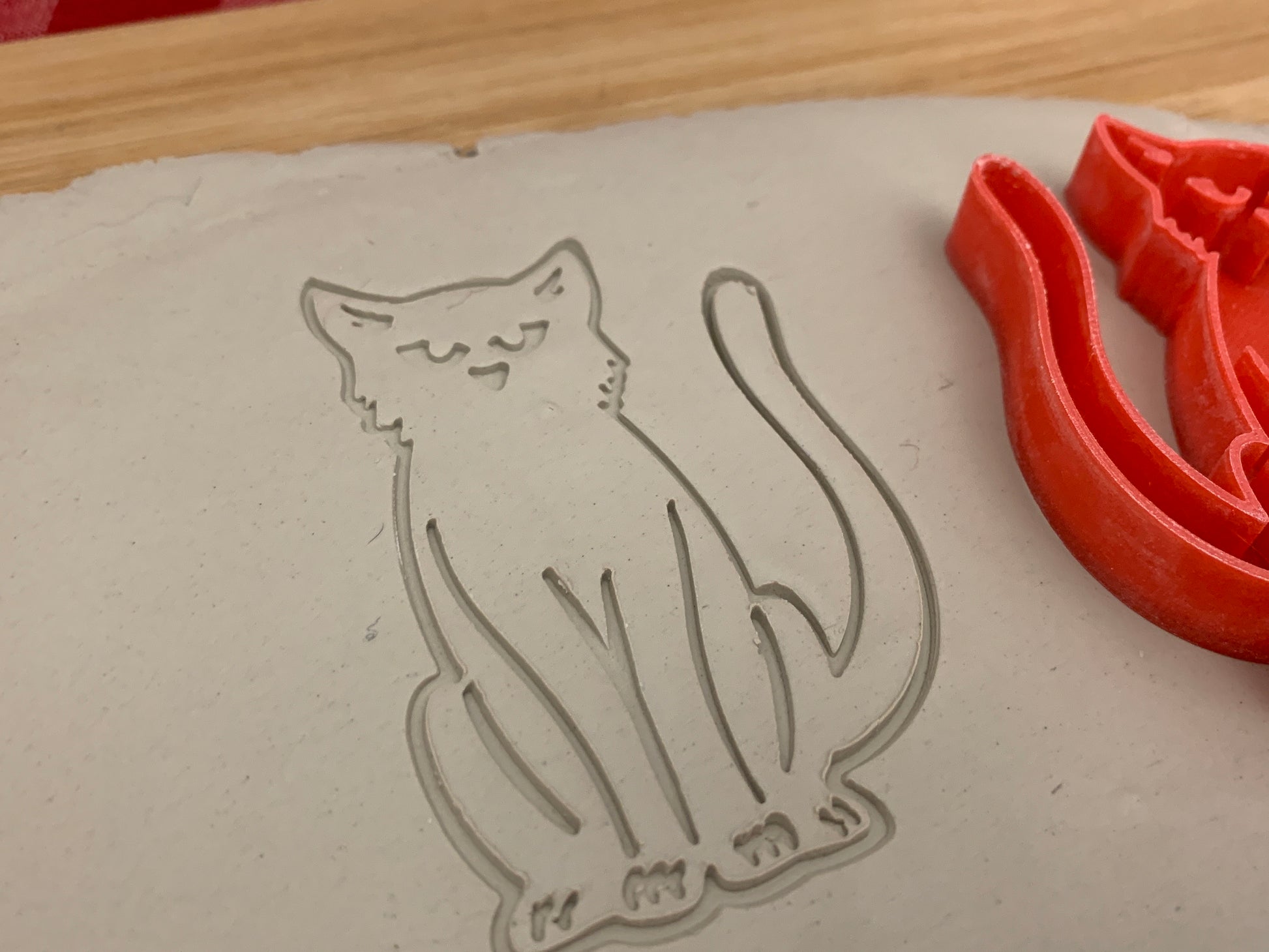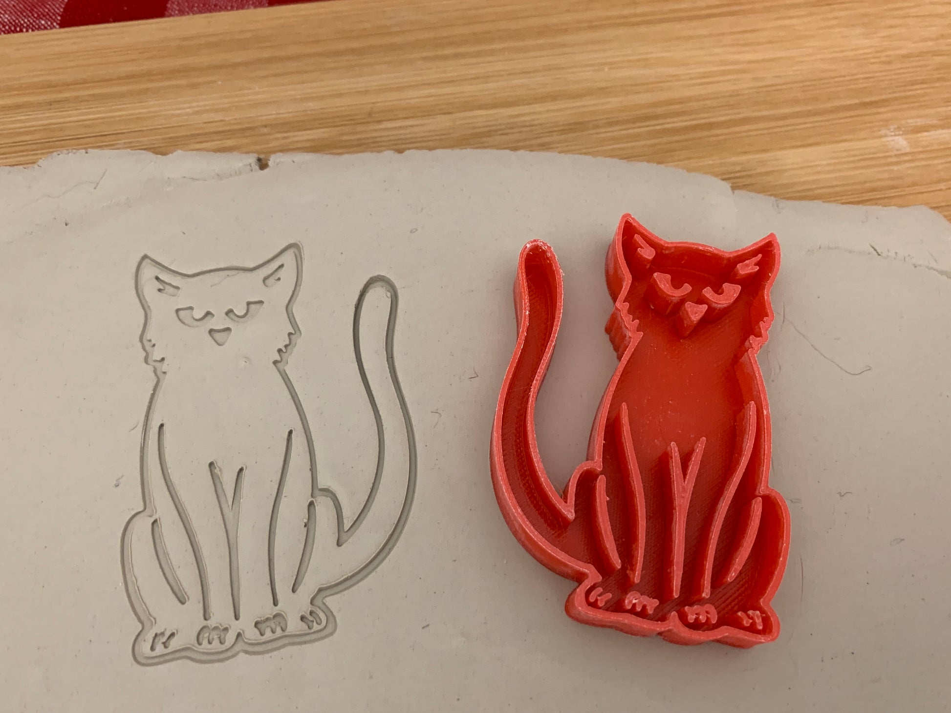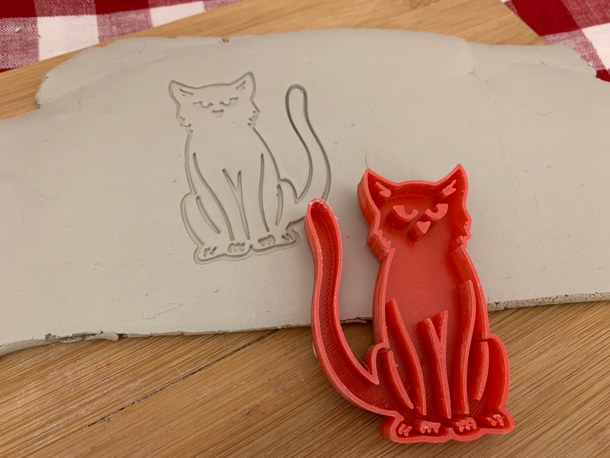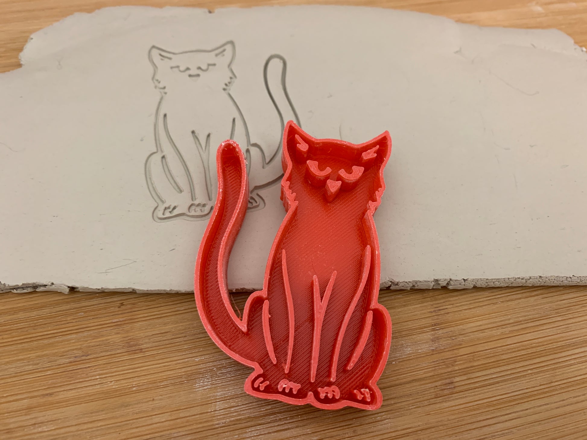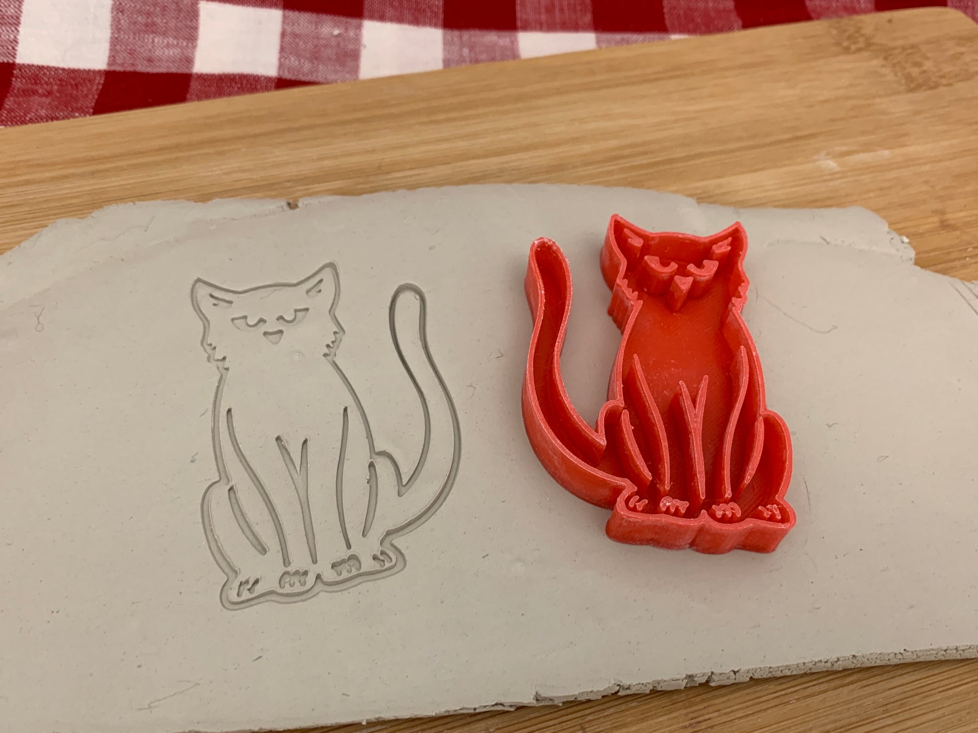 Pottery Stamp, Halloween Black Cat design - multiple sizes