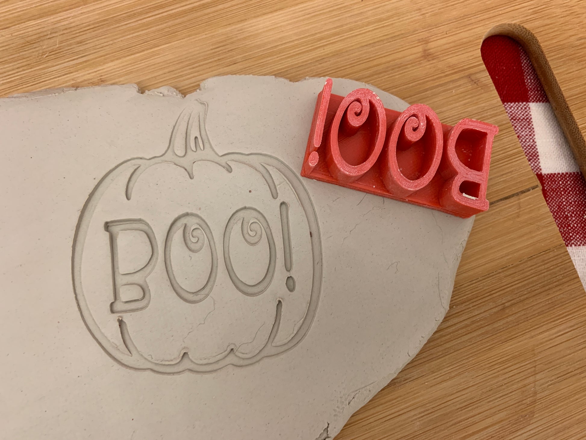 Halloween "BOO" word stamp - plastic 3D printed, multiple sizes