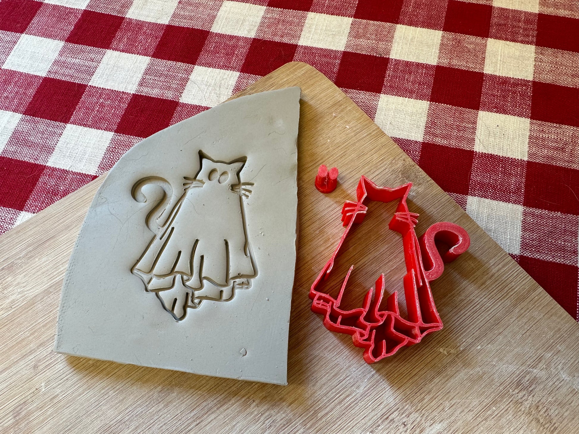 Halloween Cat dressed as Ghost stamp - plastic 3D printed, multiple sizes