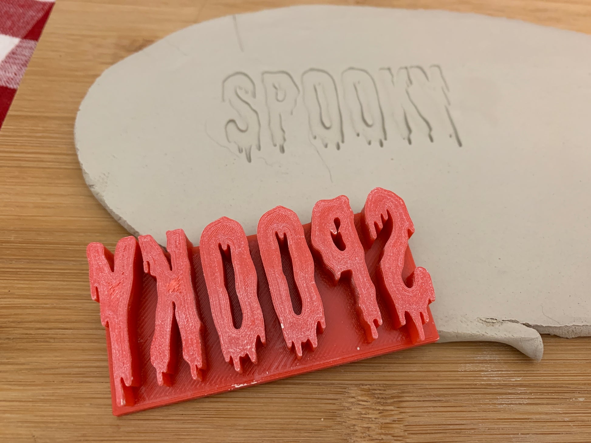Halloween "SPOOKY" word stamp - plastic 3D printed, multiple sizes