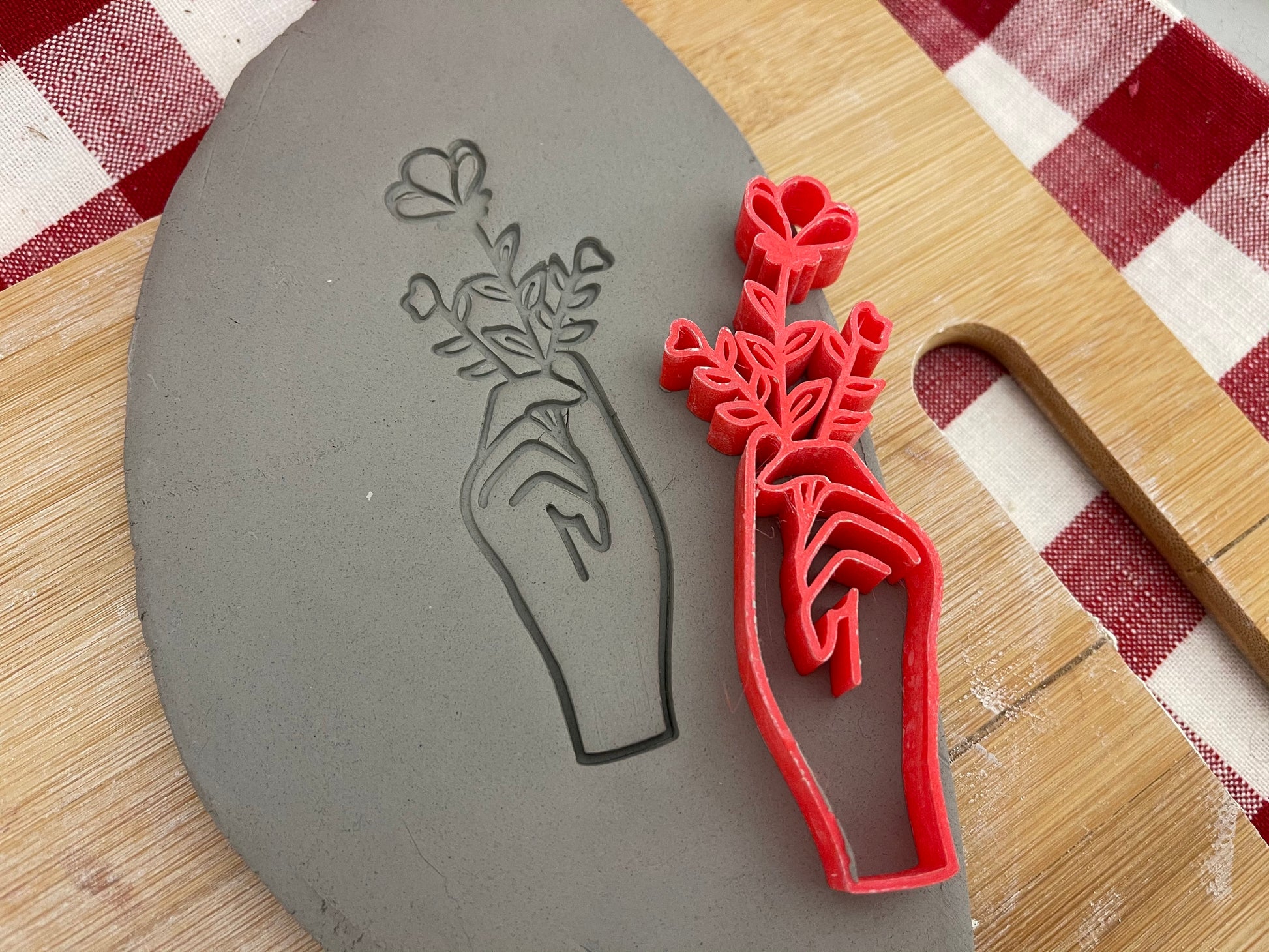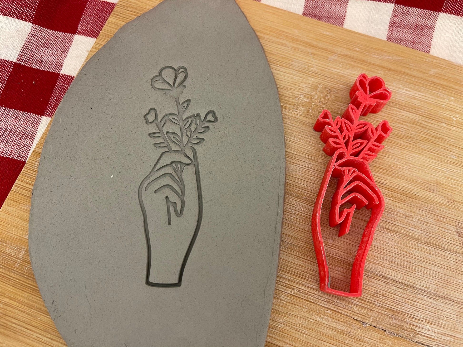 Pottery Stamp, Hand w/ flower bouquet design - multiple sizes