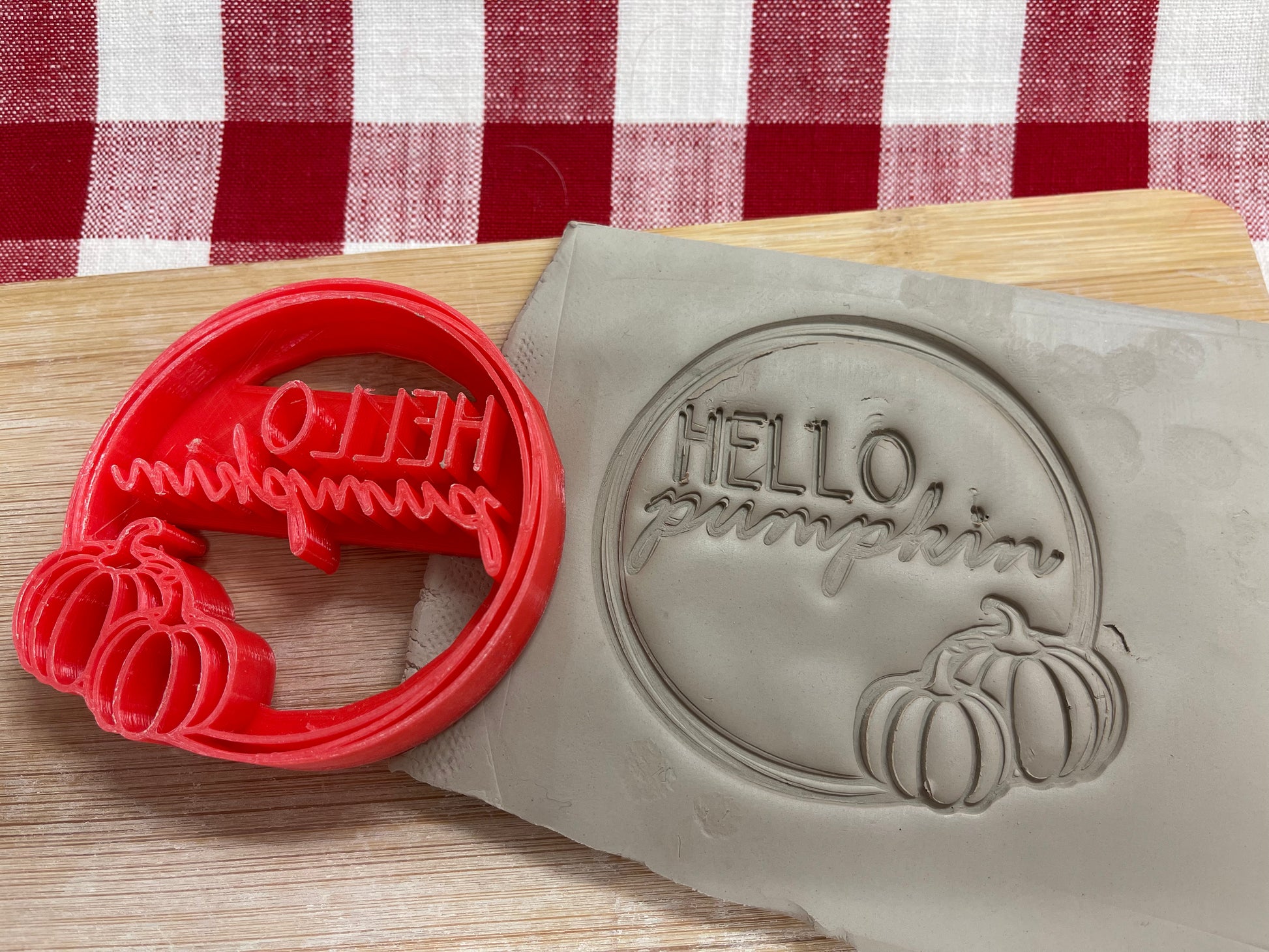 "Hello Pumpkin" pottery stamp - plastic 3d printed, multiple sizes available