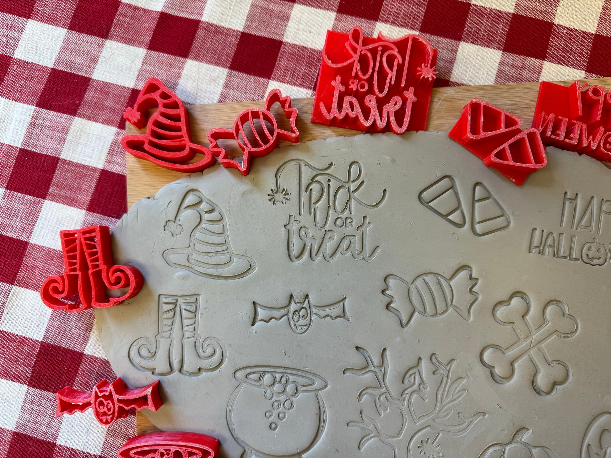 Pottery Stamp, Lot of Halloween doodles designs - multiple sizes