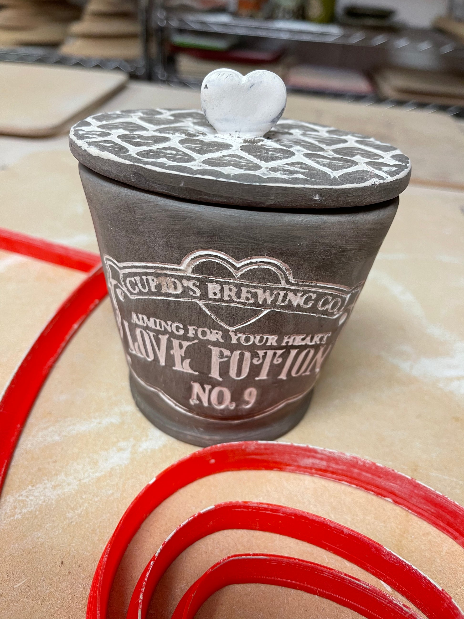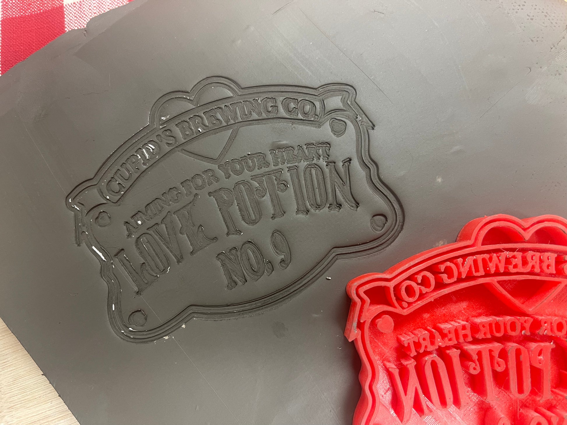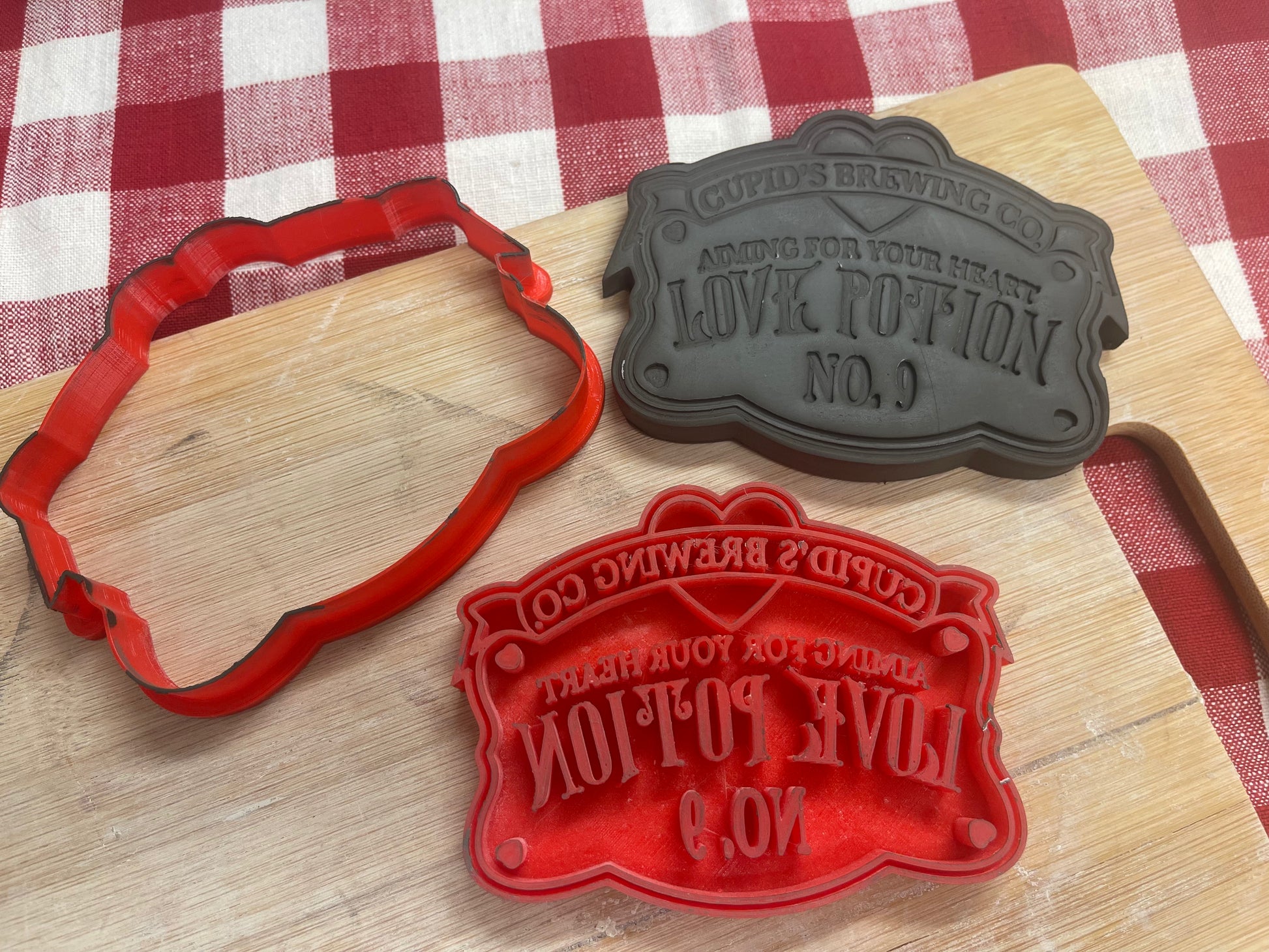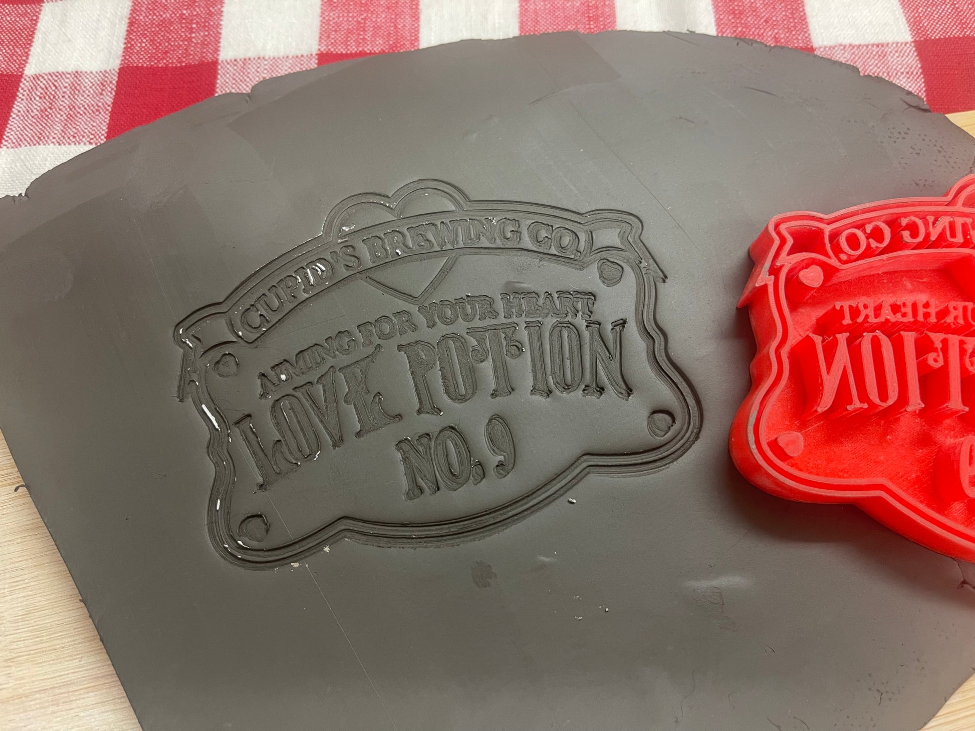 "Love Potion" pottery stamp w/ optional ornament cutter - pottery tool , plastic 3D printed, multiple sizes available