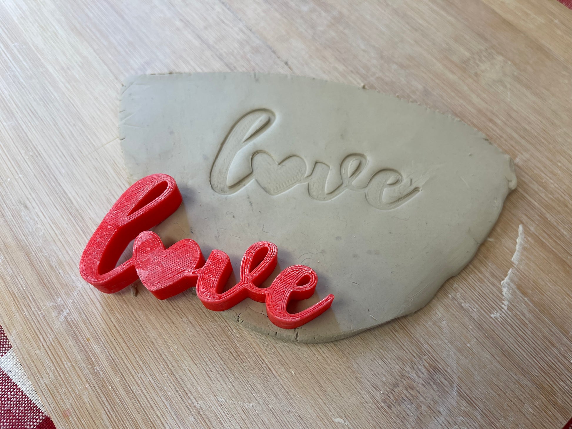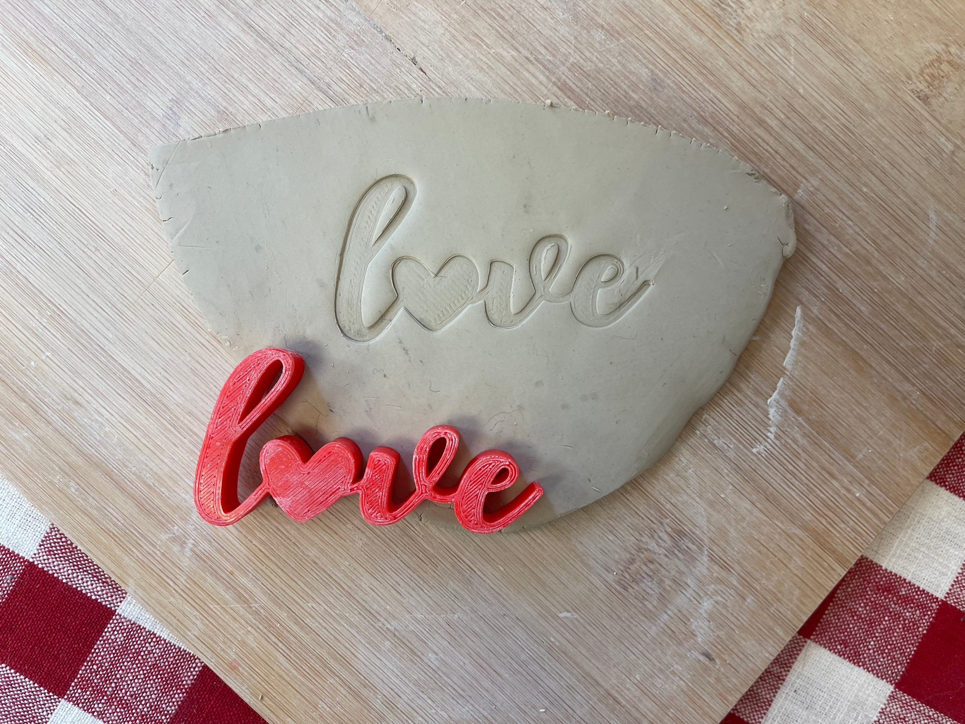 Pottery Stamp, LOVE with heart word design - multiple sizes