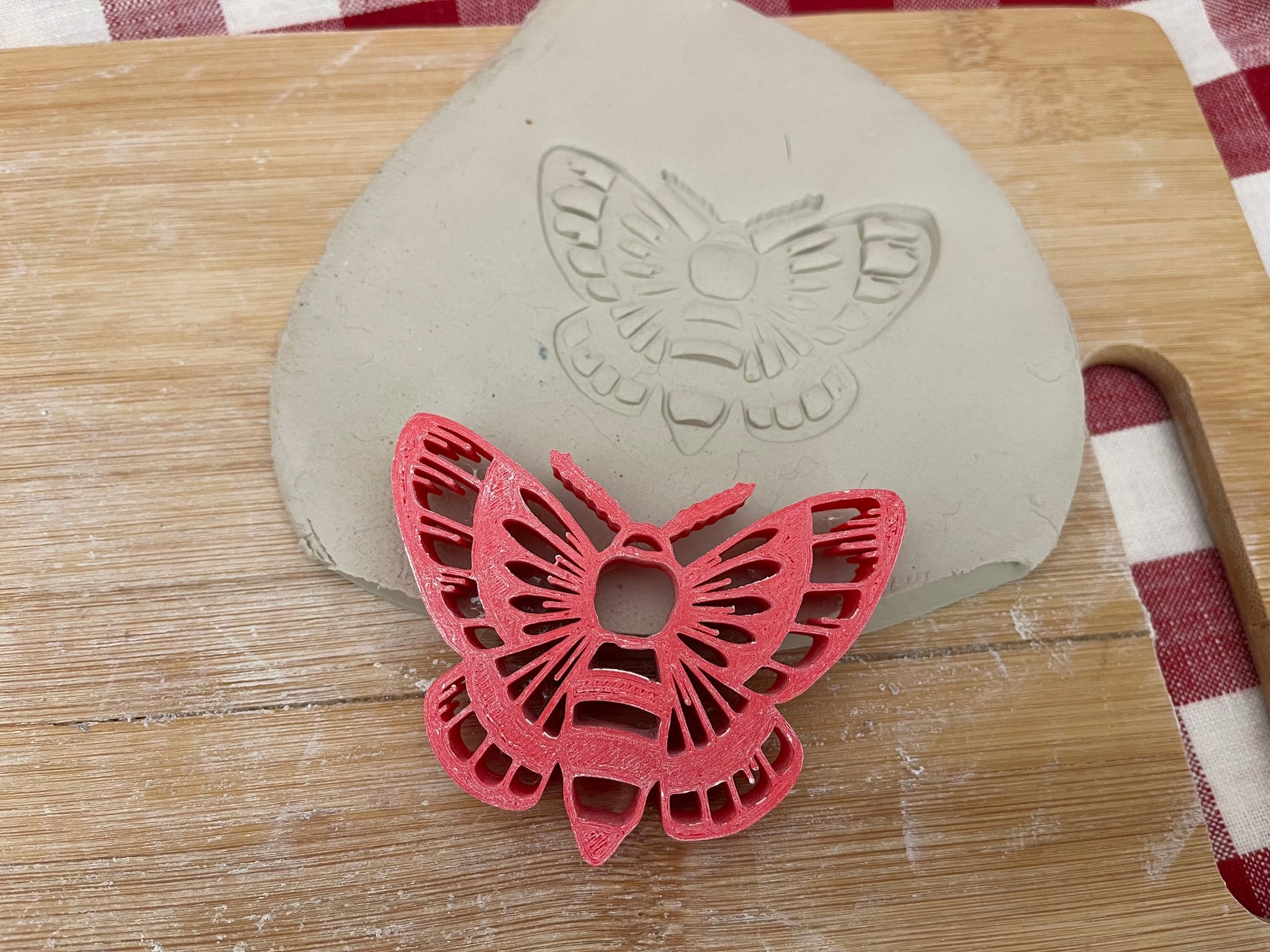 Moth 1 design, Pottery Stamp or Stencil w/ optional cutter, plastic 3d printed, multiple sizes available