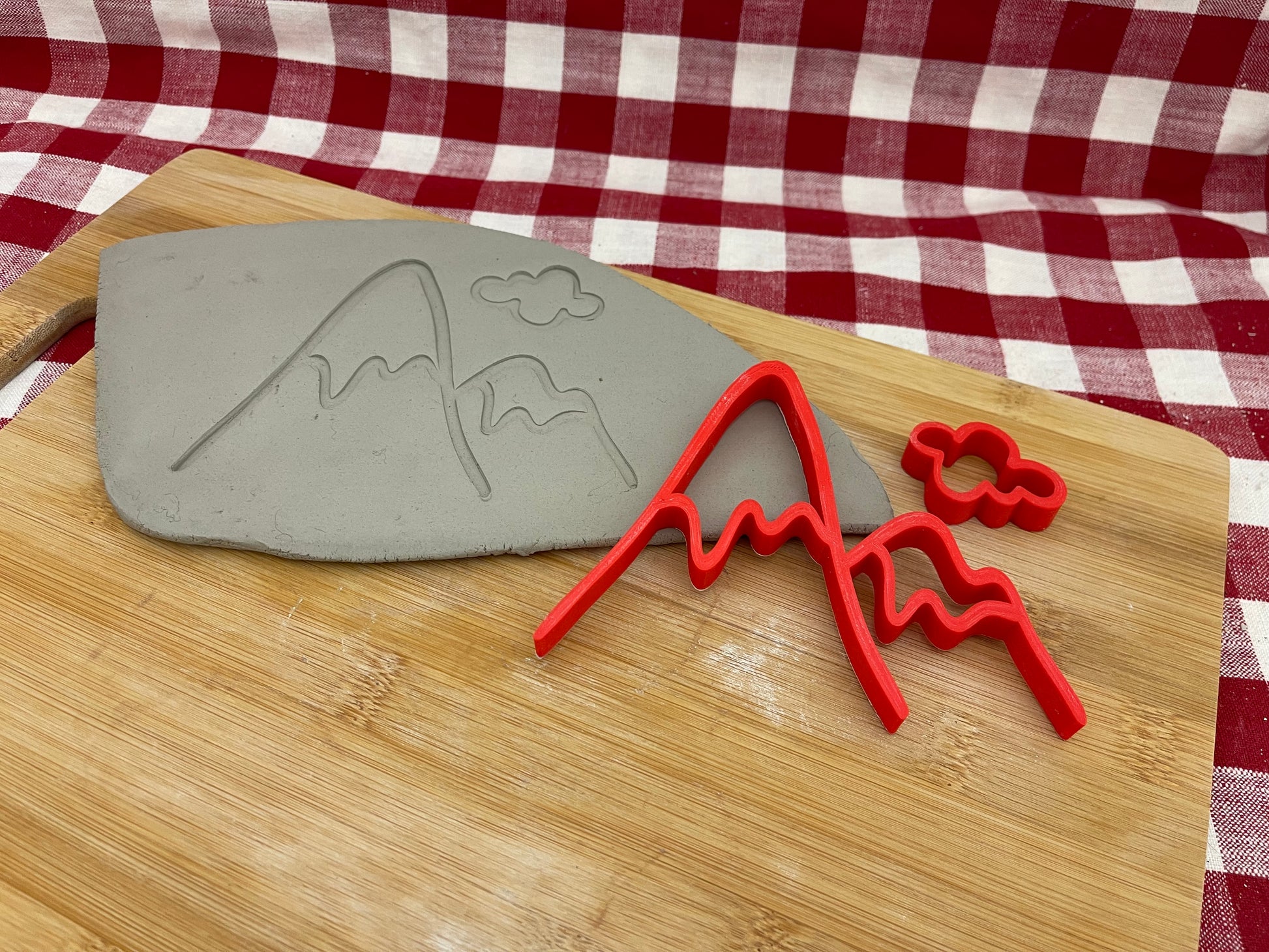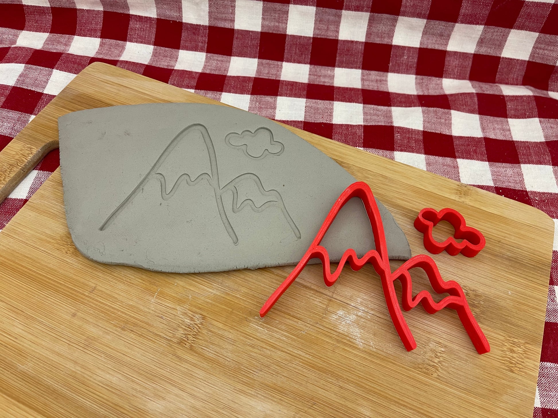 Pottery Stamp, Mountain w/ cloud design, Camping doodle series - multiple sizes