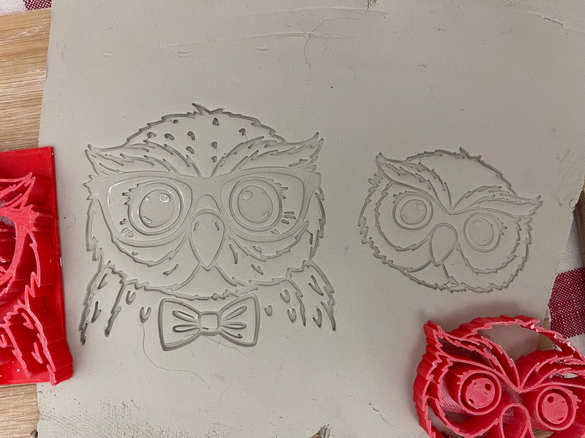 Pottery Stamp, Owl face with glasses or plain design - multiple sizes