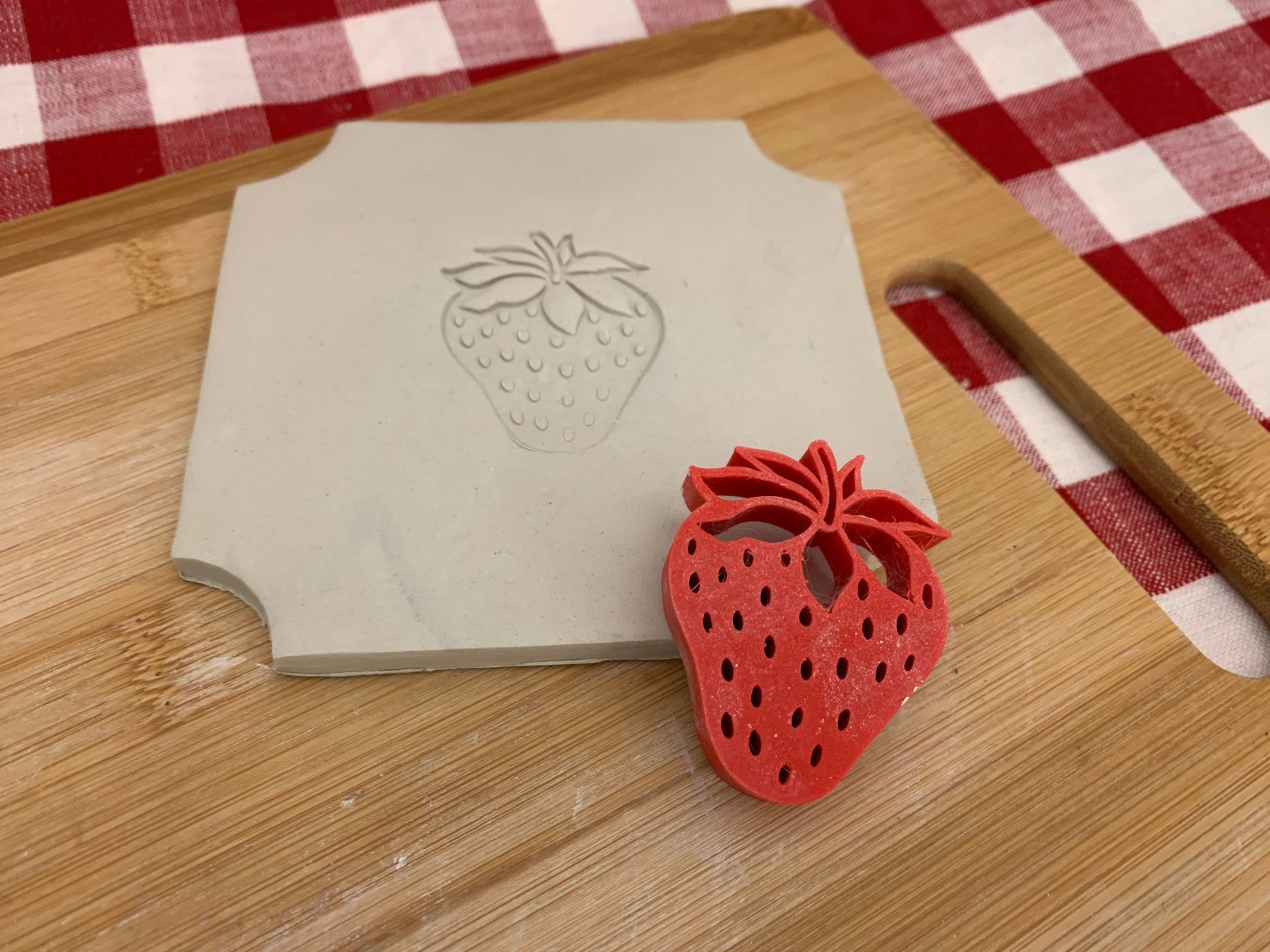 Strawberry Design, Pottery Stamp or Stencil w/ optional cutter, multiple sizes