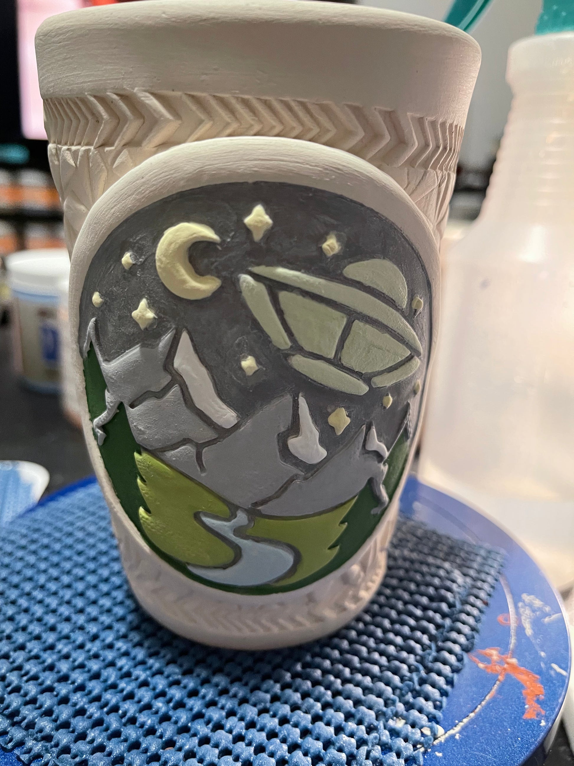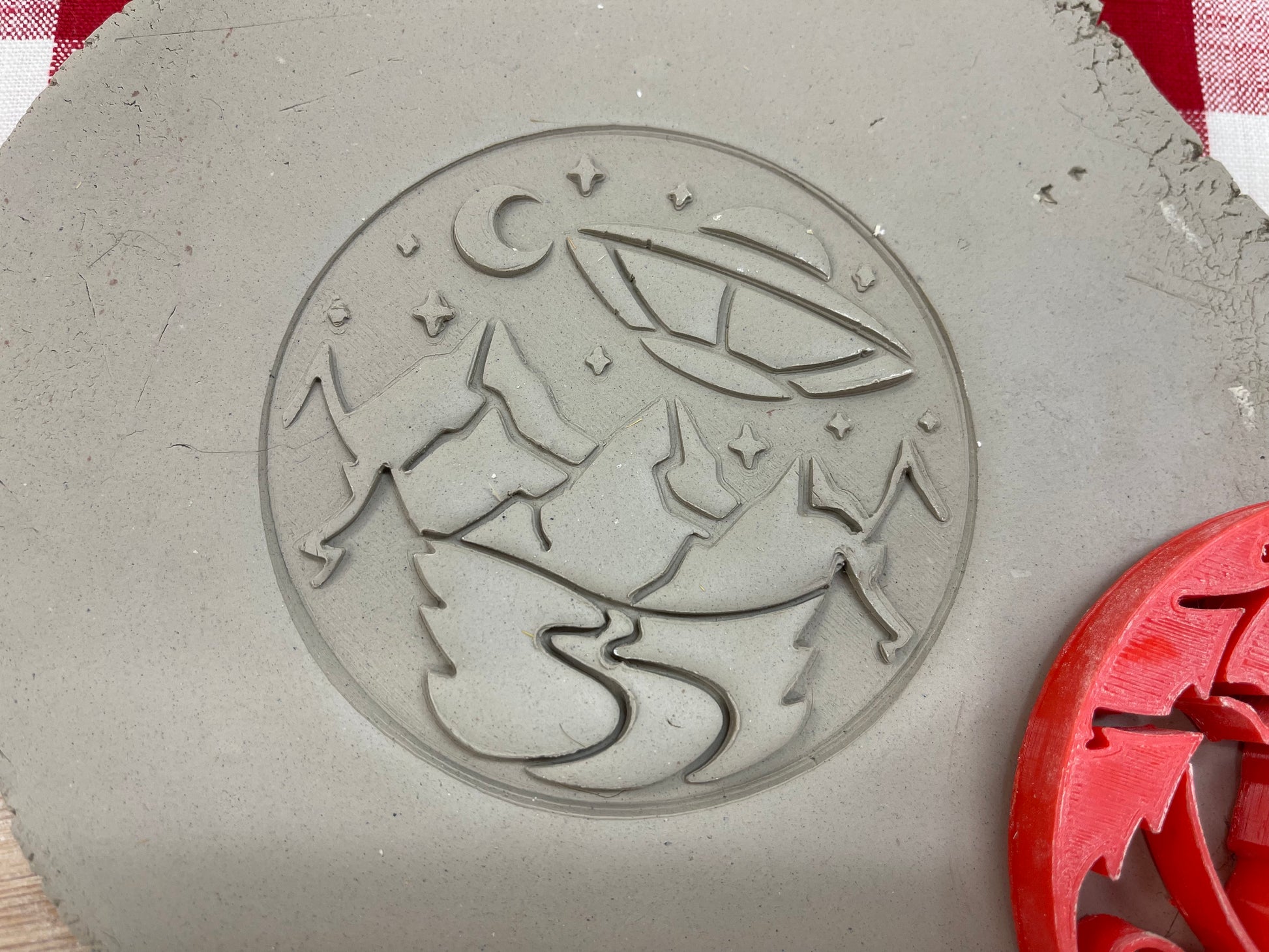UFO Mountain scene stamp - plastic 3D printed, multiple sizes