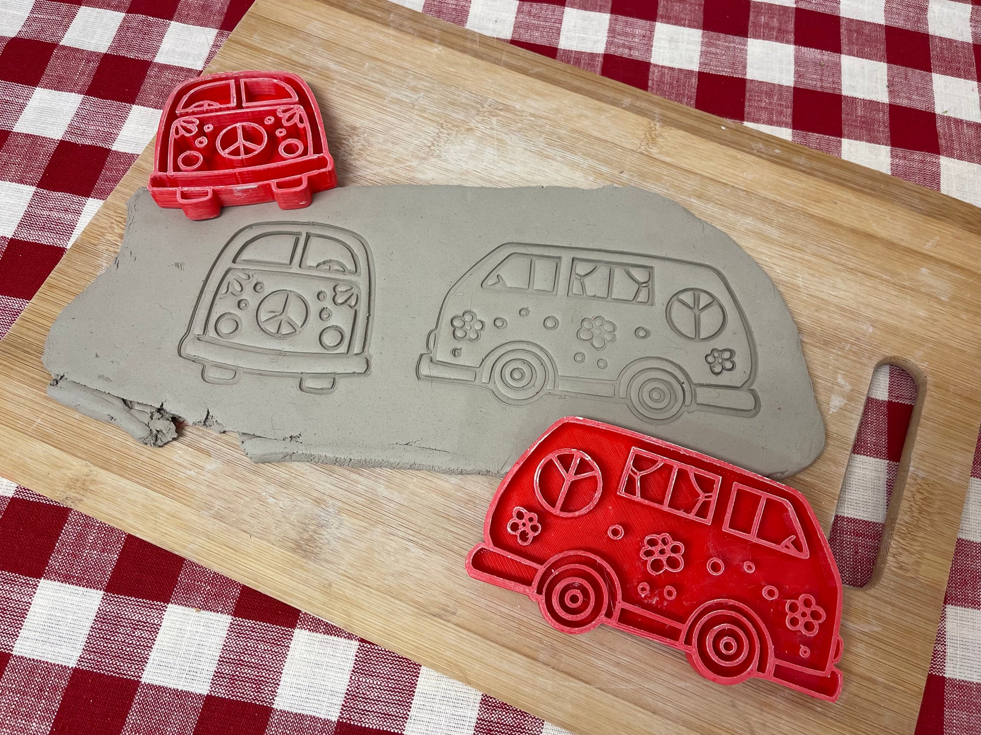 Pottery Stamp, Van design, from the May 2023 mystery box, front and side view, multiple sizes available