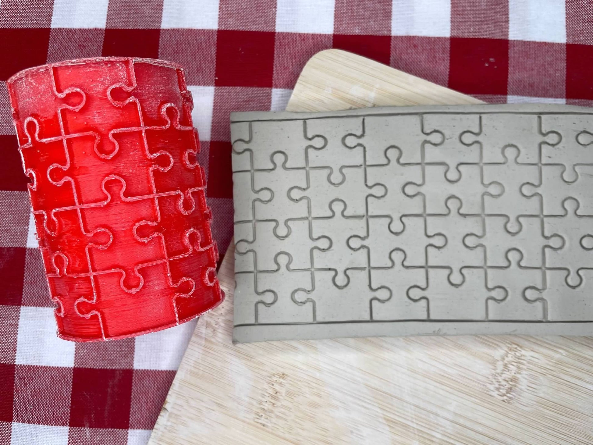 Puzzle pattern textured roller - from September 2024 mystery box, plastic 3D printed, repeating pattern