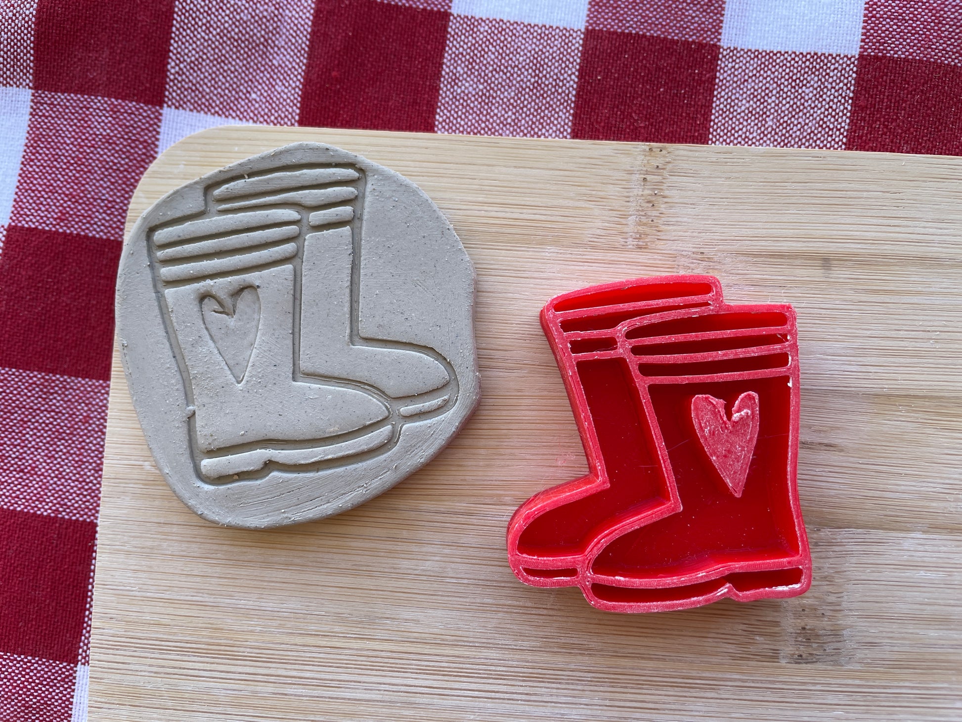 Rainboots Pottery Stamp - Spring themed February 2025 Mystery Box, multiple sizes available