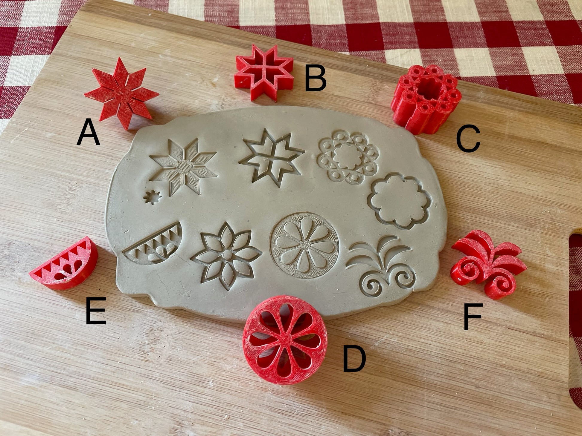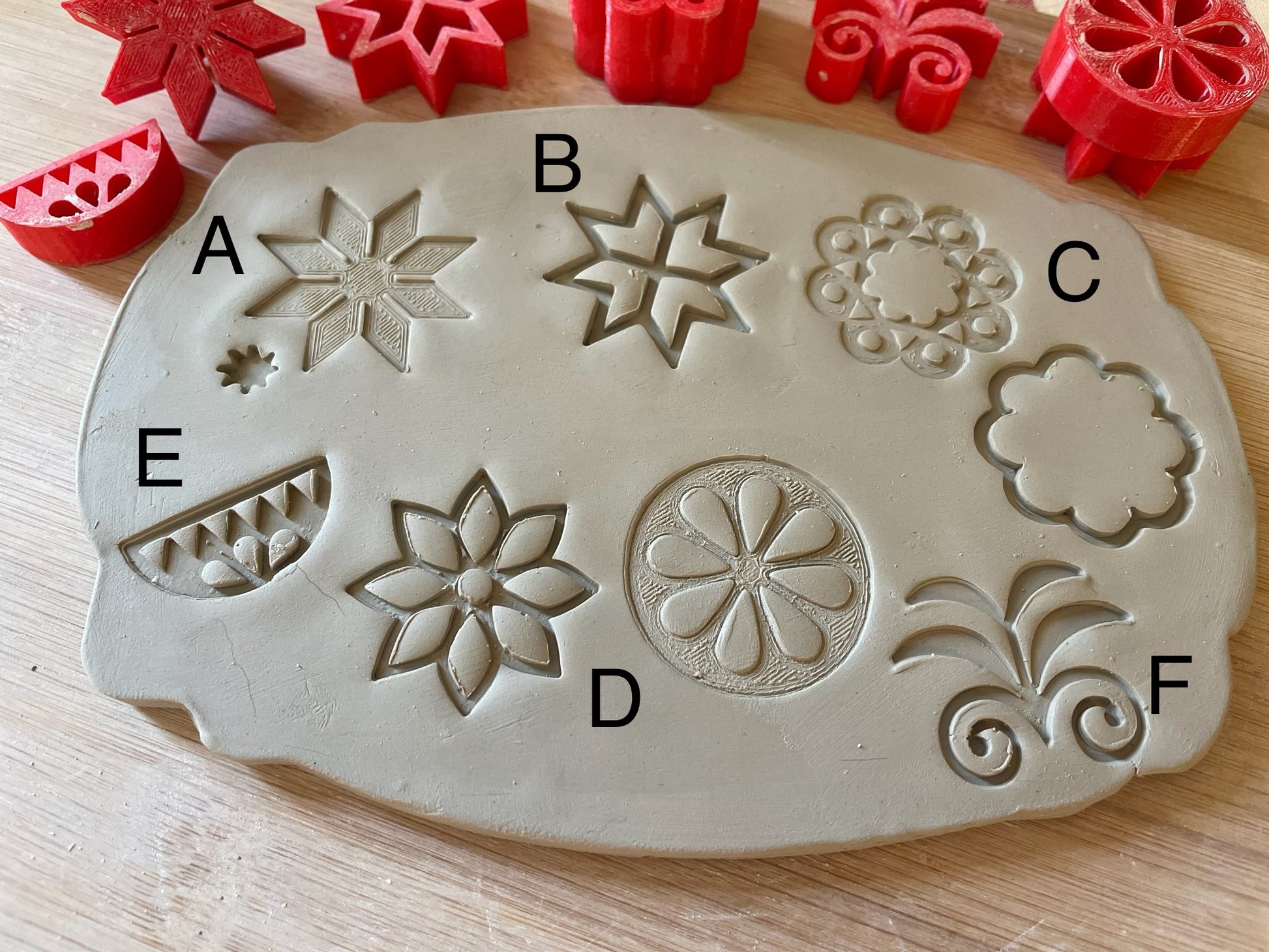 Plastic stamp for pottery use. Measurements are approximate and taken at the widest location. Choose size in drop down menu. For custom sizes now shown, please contact me.