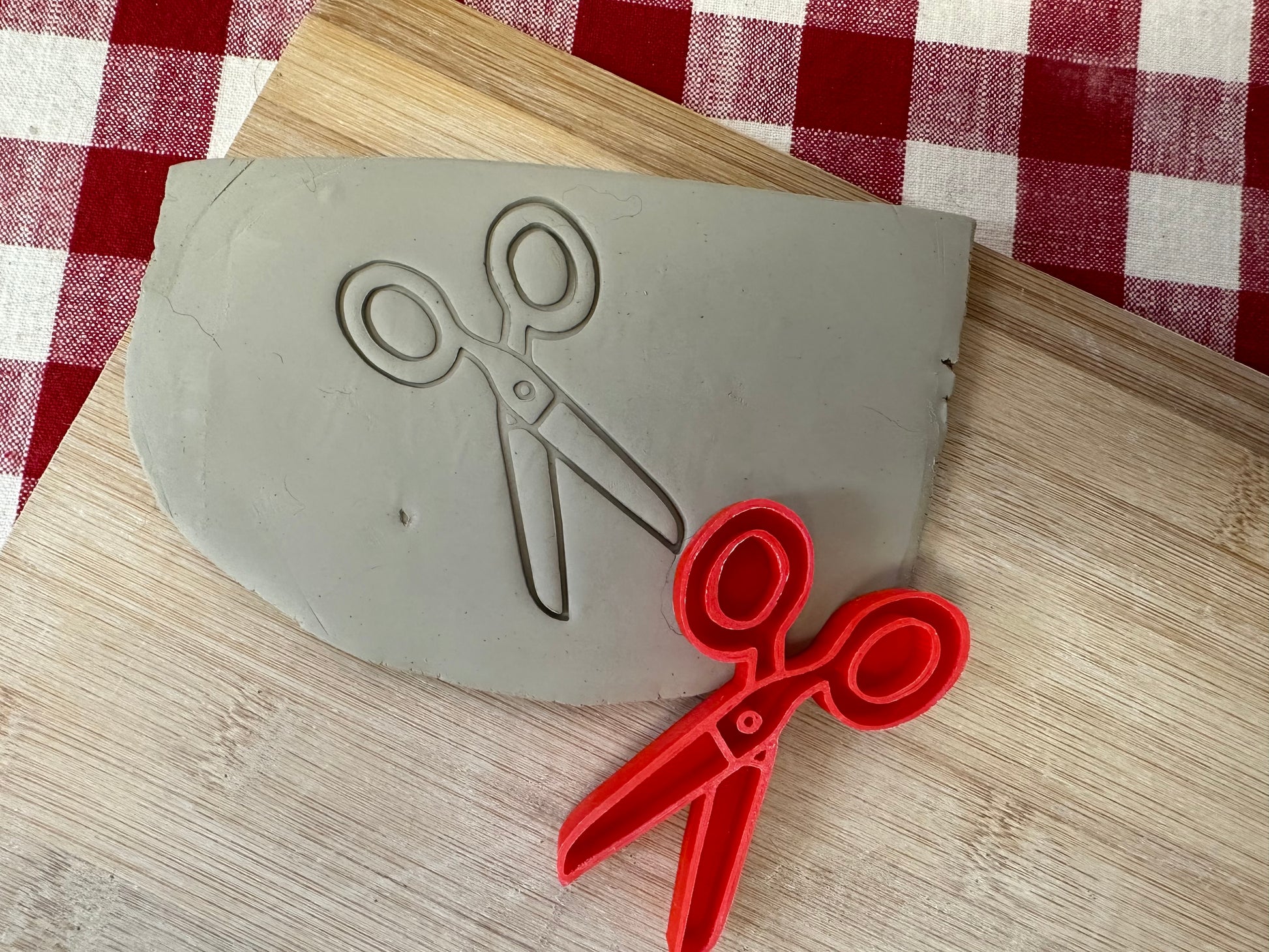 Scissors Pottery Stamp - plastic 3D printed, multiple sizes