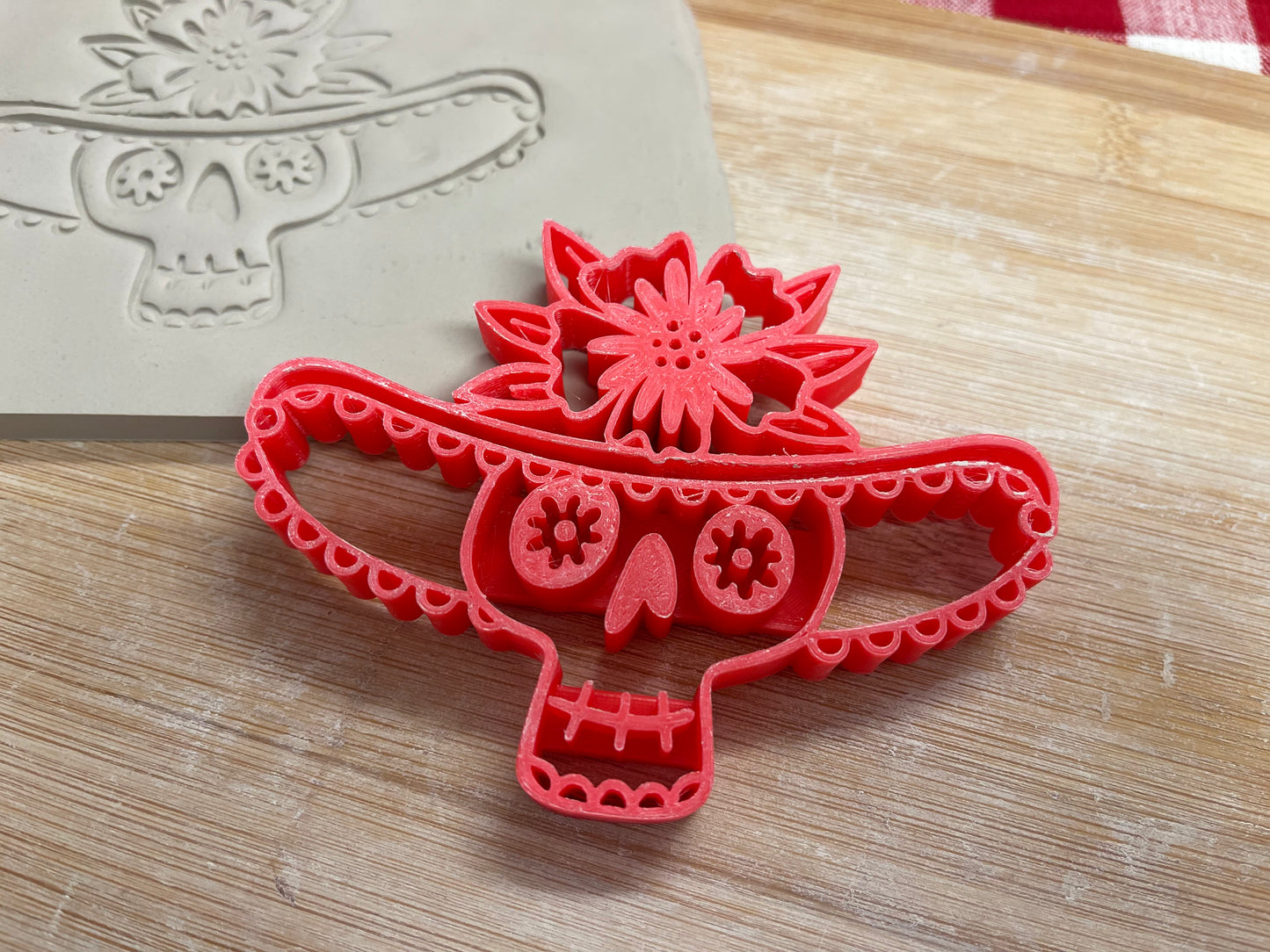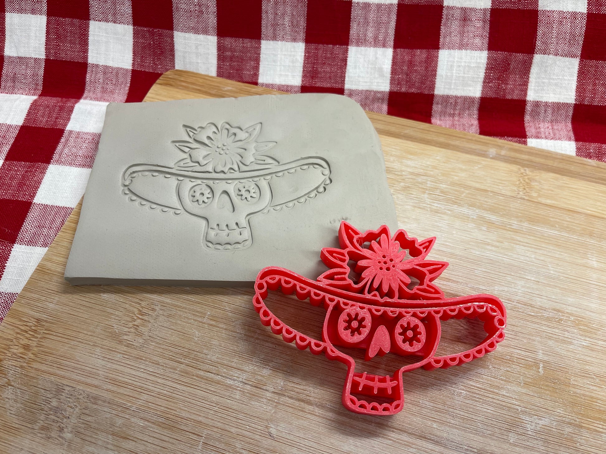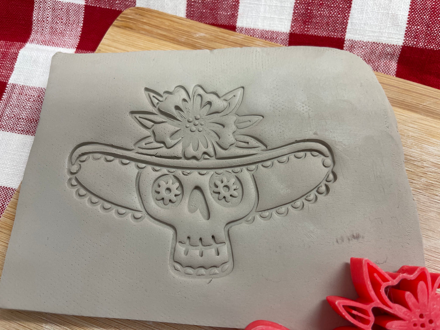 Sugar Skull with Flower hat stamp that's part of our Day of the Dead collection. Measurements are approximate and taken at the biggest location.