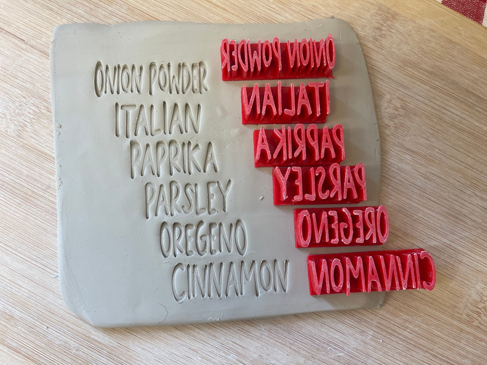 Spice Words Pottery Stamps - basil, cumin, ginger, etc, 3D Printed, choose word
