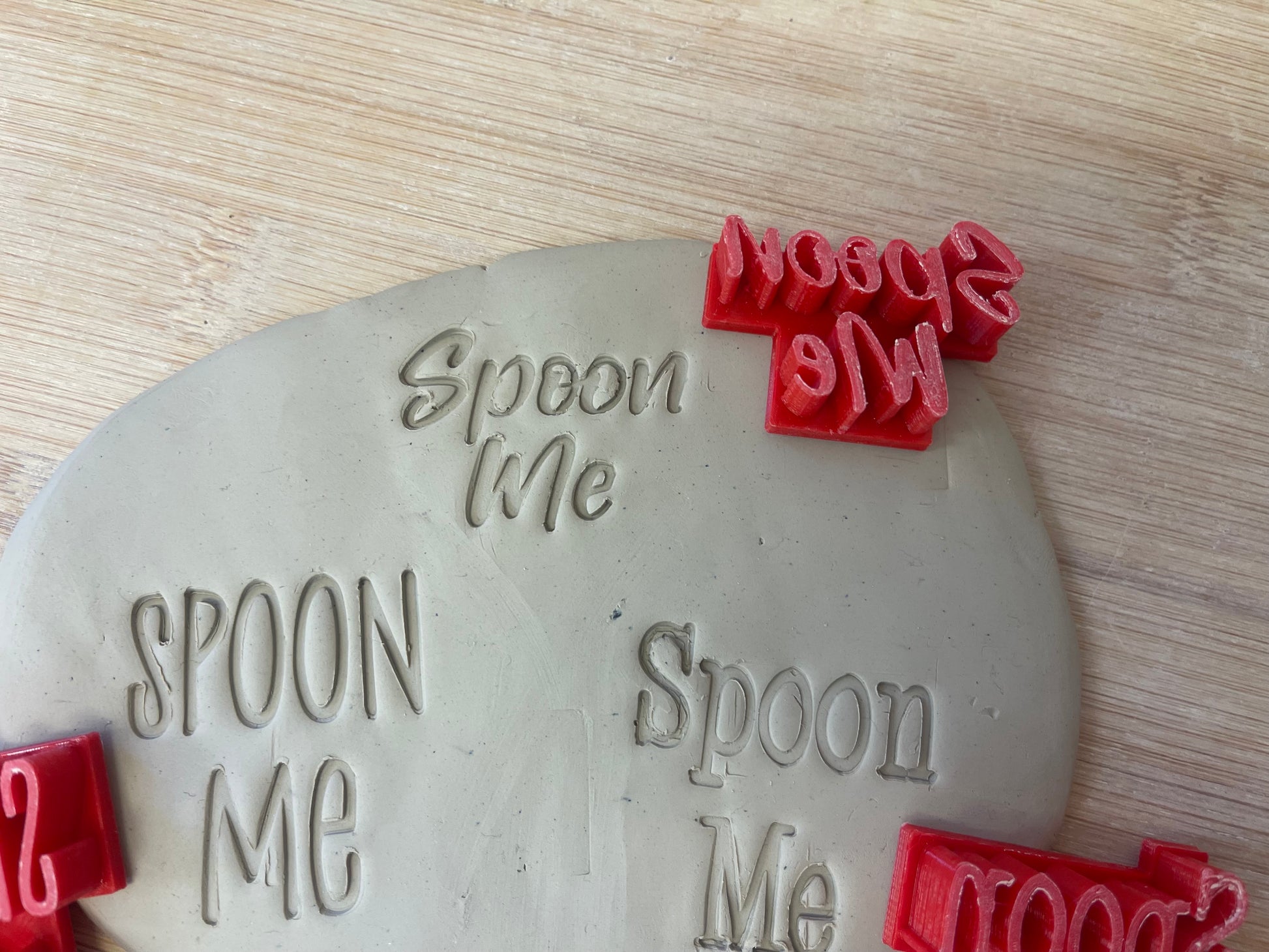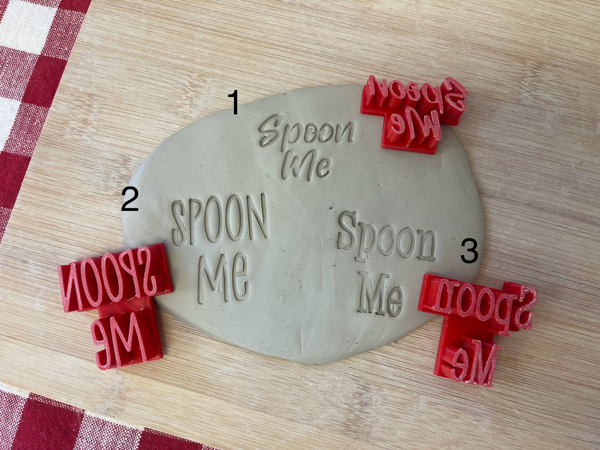 "Spoon Me" word stamp - for Spoon rest, plastic 3D printed, multiple sizes