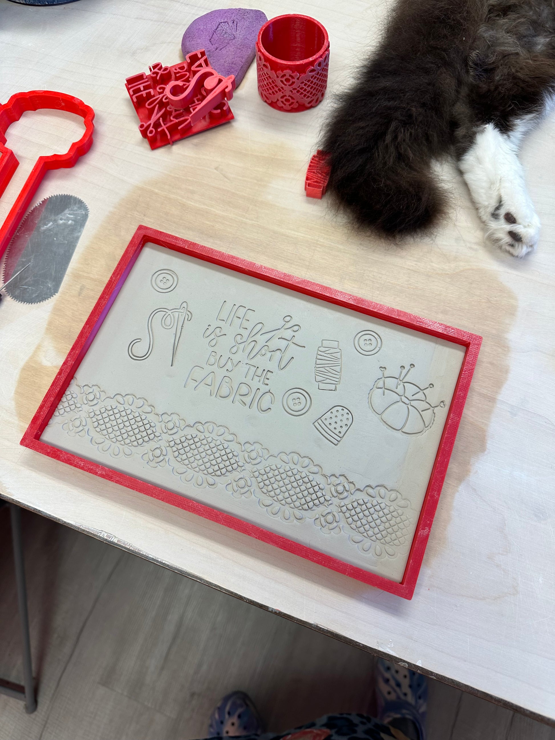 Clay cutter is 3D printed using PLA plastic filament. Keeps its shape as opposed to metal cookie cutters. Has a wide handle for strength and durability.