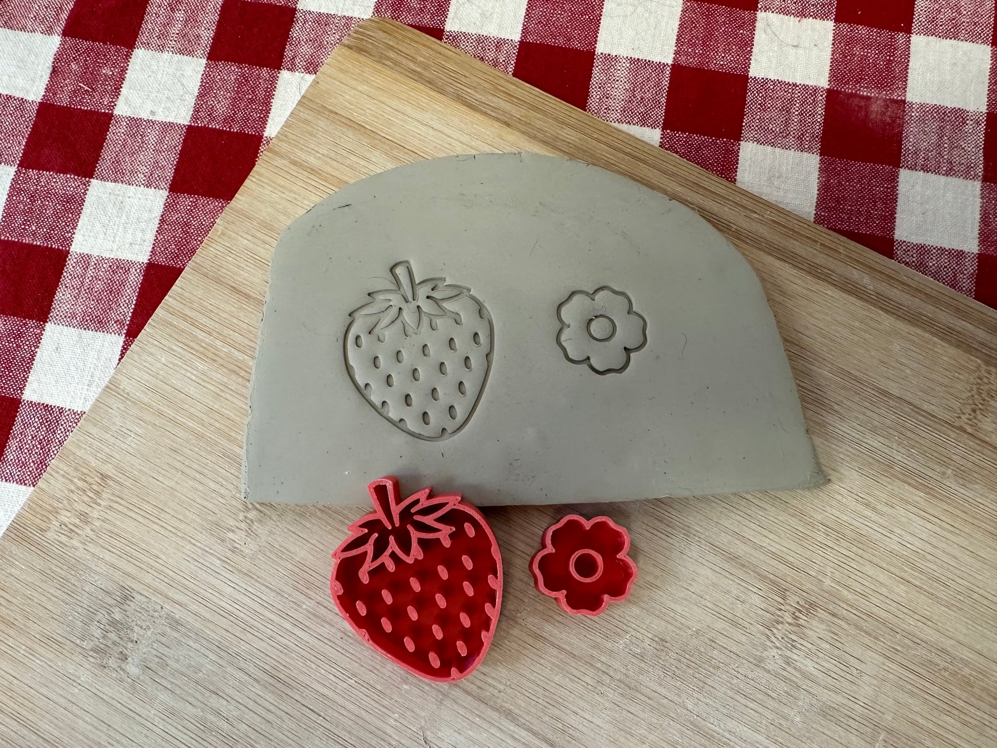 Strawberry and flower Pottery stamp - sold as set or each, plastic 3D printed