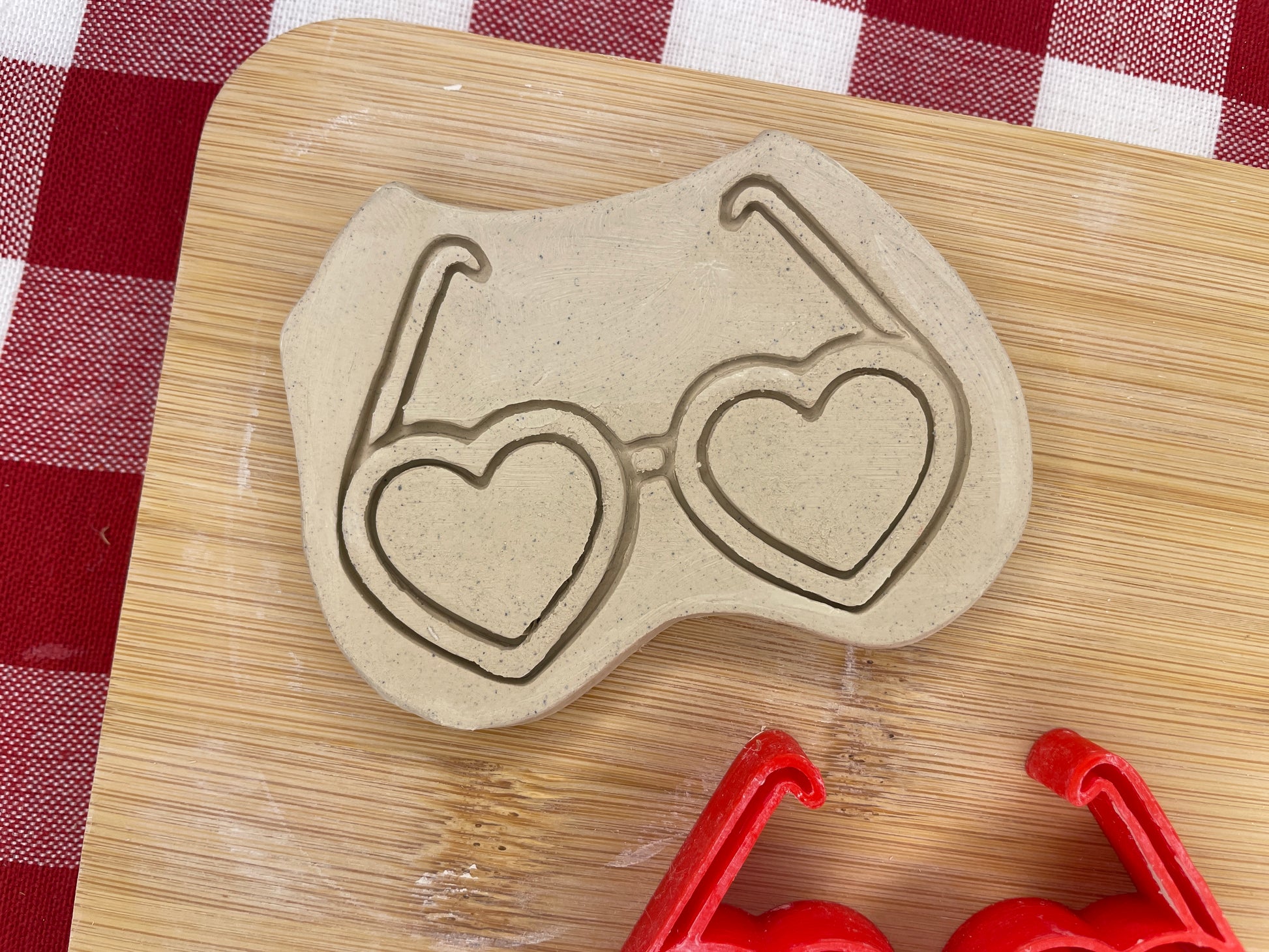 Heart shaped Sunglasses Pottery Stamp - Teenagers themed January 2025 Mystery Box, multiple sizes available