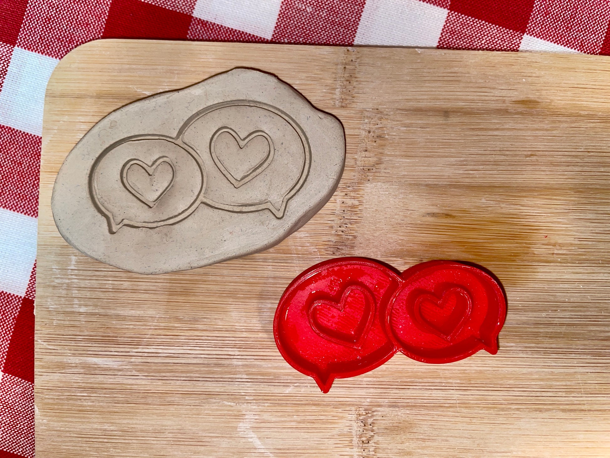 Talk / Text Bubbles Heart Emoji Pottery Stamp - November 2025 - Hearts Themed Mystery Box, multiple sizes available