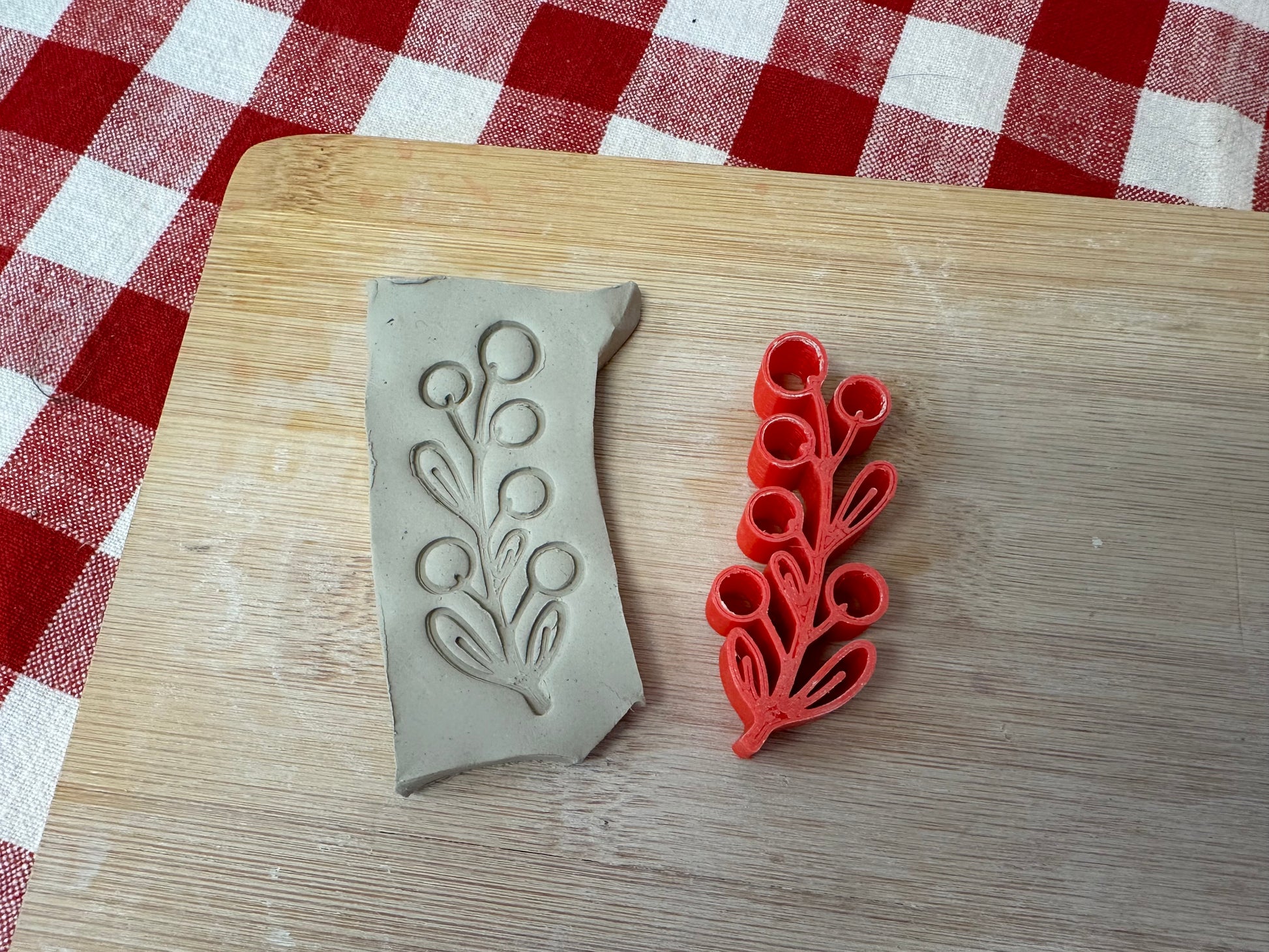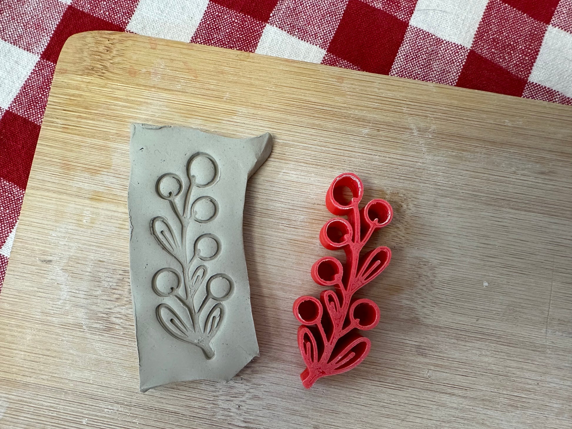 Thanksgiving Stamp Series - Branch with Berries stamp, plastic 3D printed, multiple sizes