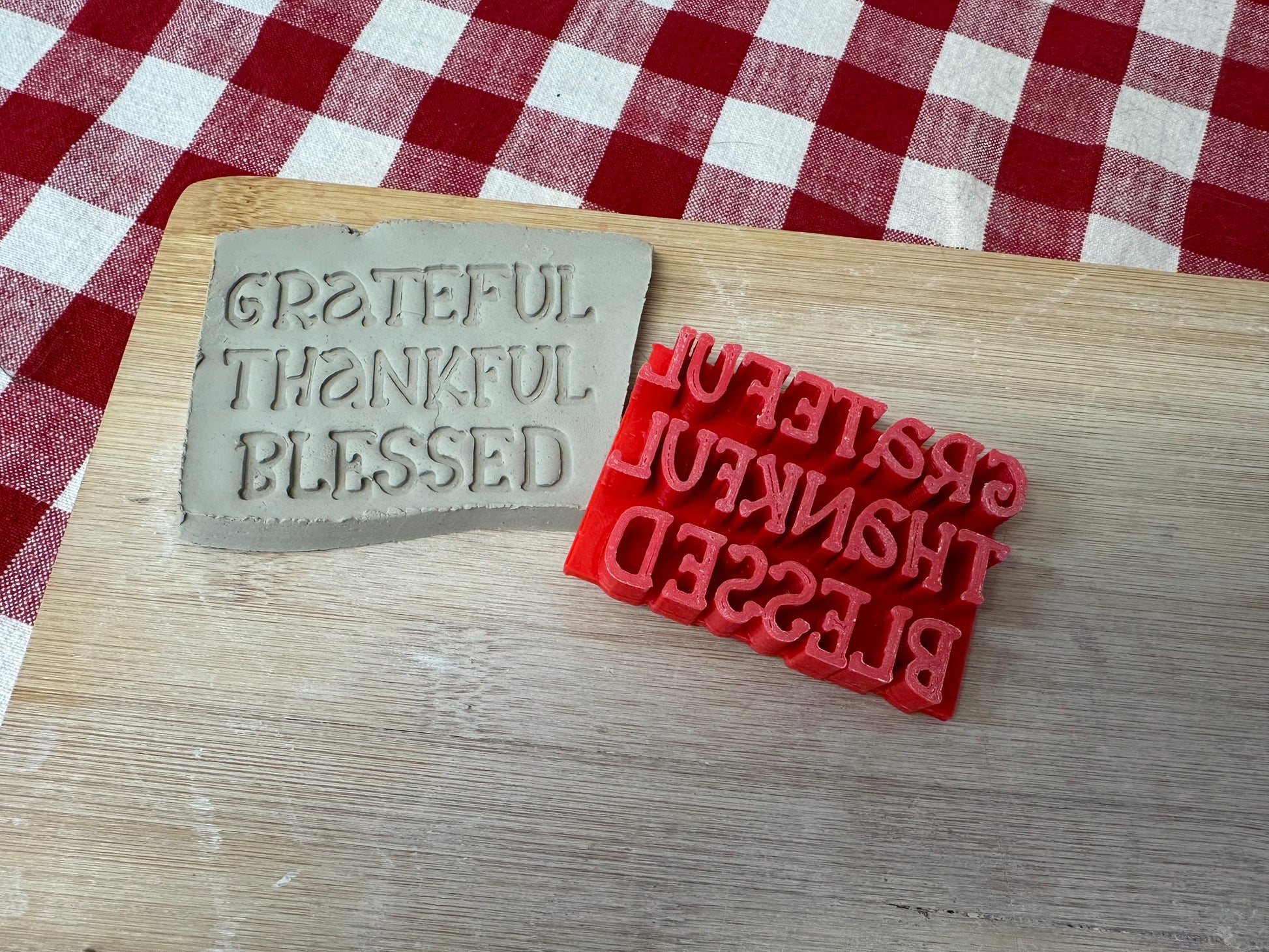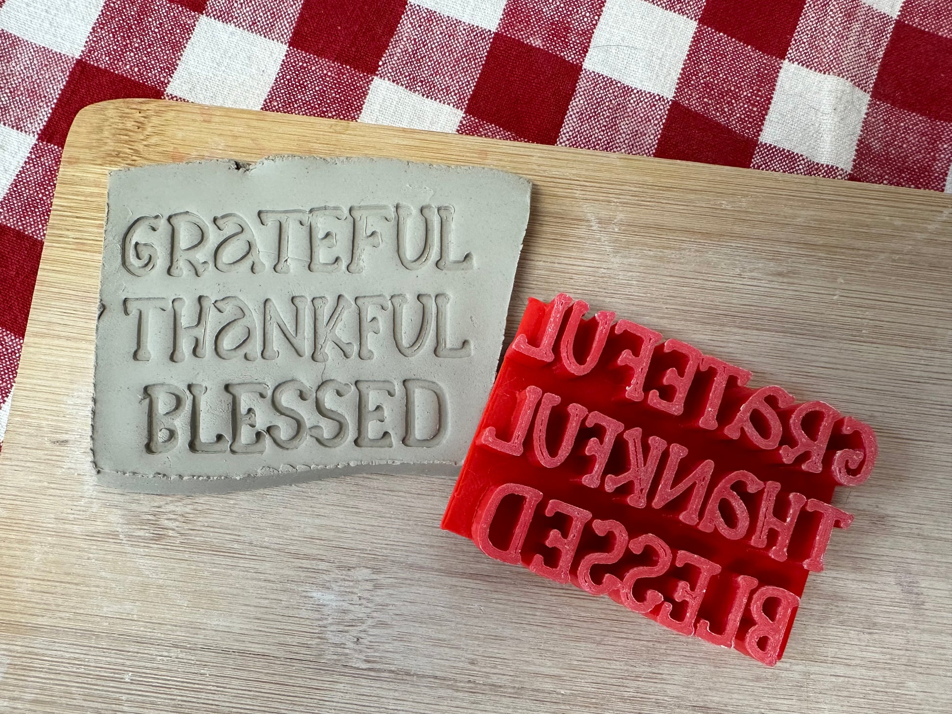Thanksgiving Stamp Series - "Grateful, Thankful, Blessed" word stamp, plastic 3D printed, multiple sizes