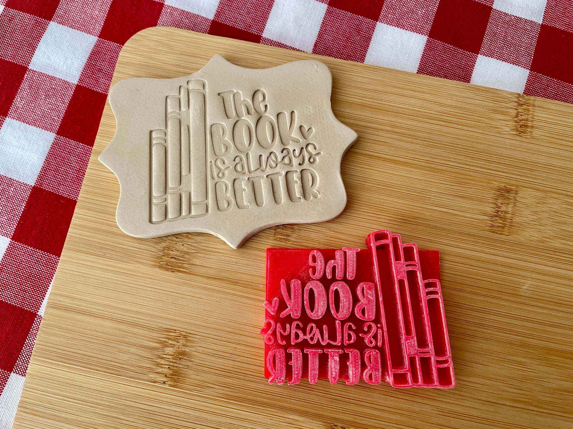 "The Book is Always Better" word stamp - plastic 3D design, multiple sizes available