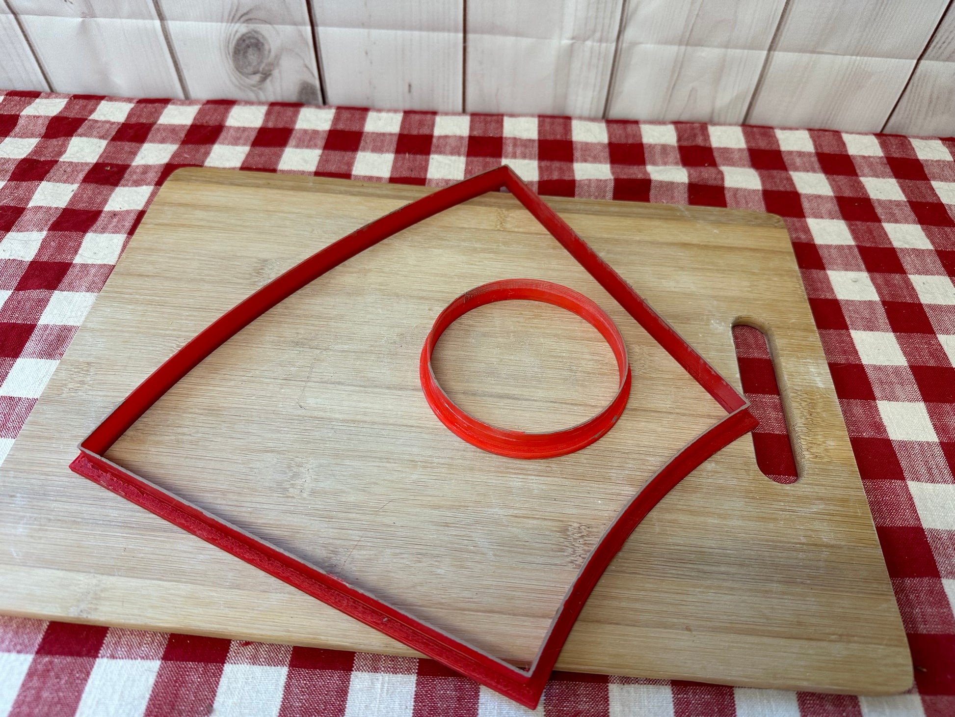 Clay cutter is 3D printed using PLA plastic filament. Keeps its shape as opposed to metal cookie cutters. Has a wide handle for strength and durability.