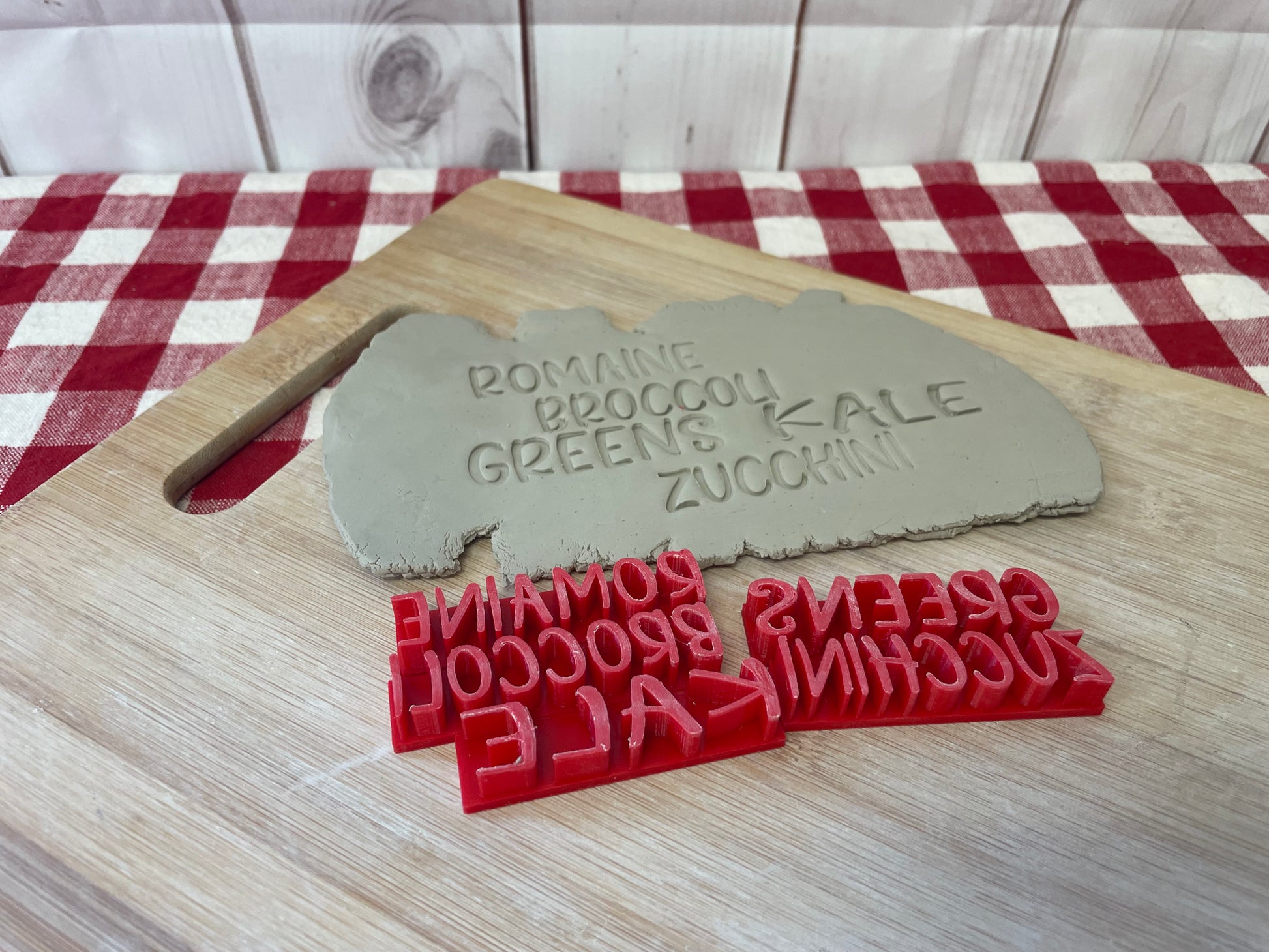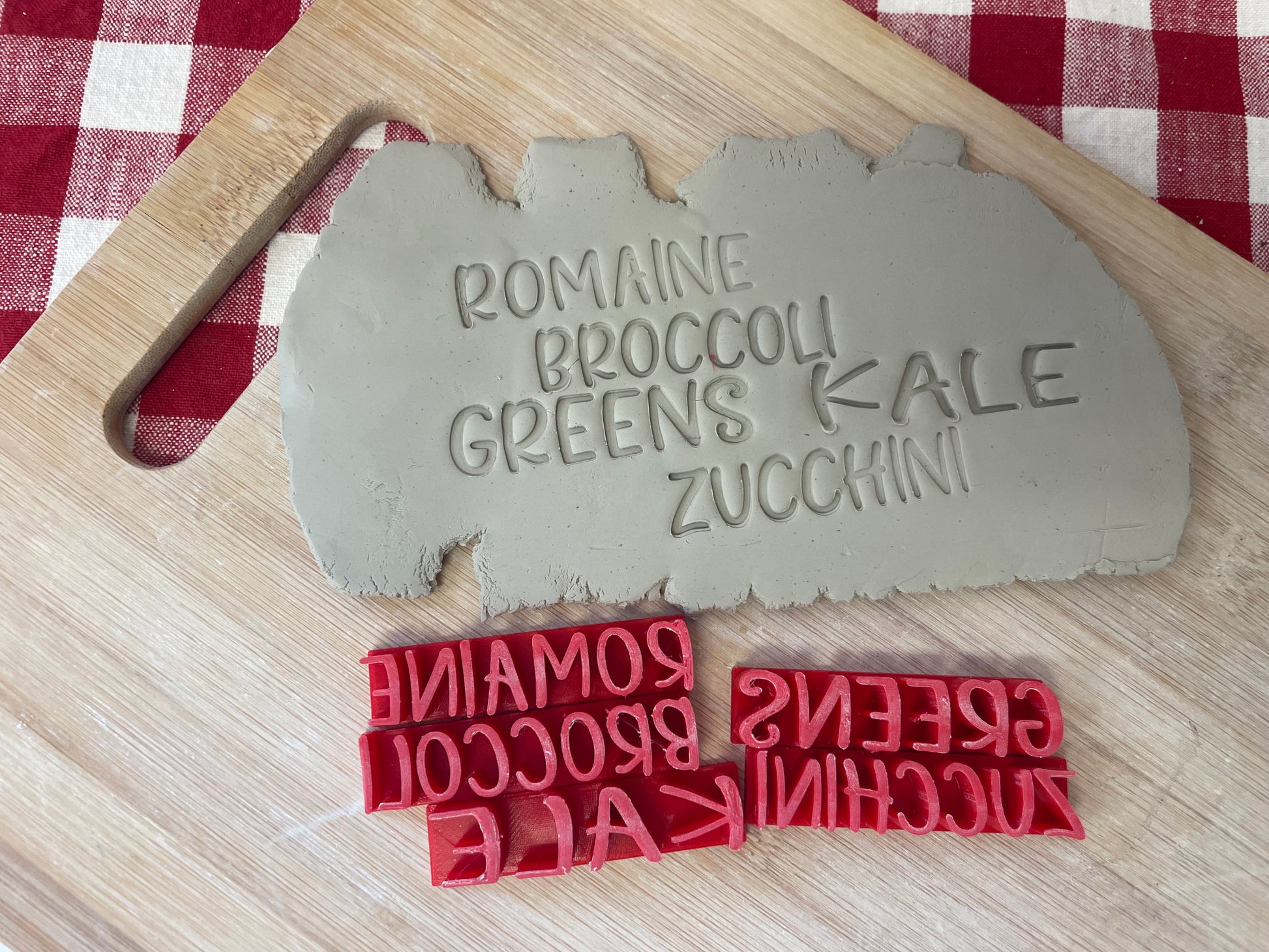 Vegetable (Veggie) Garden Stake Words Pottery Stamps - Tomatoes, Peppers, Corn, etc, 3D Printed, each