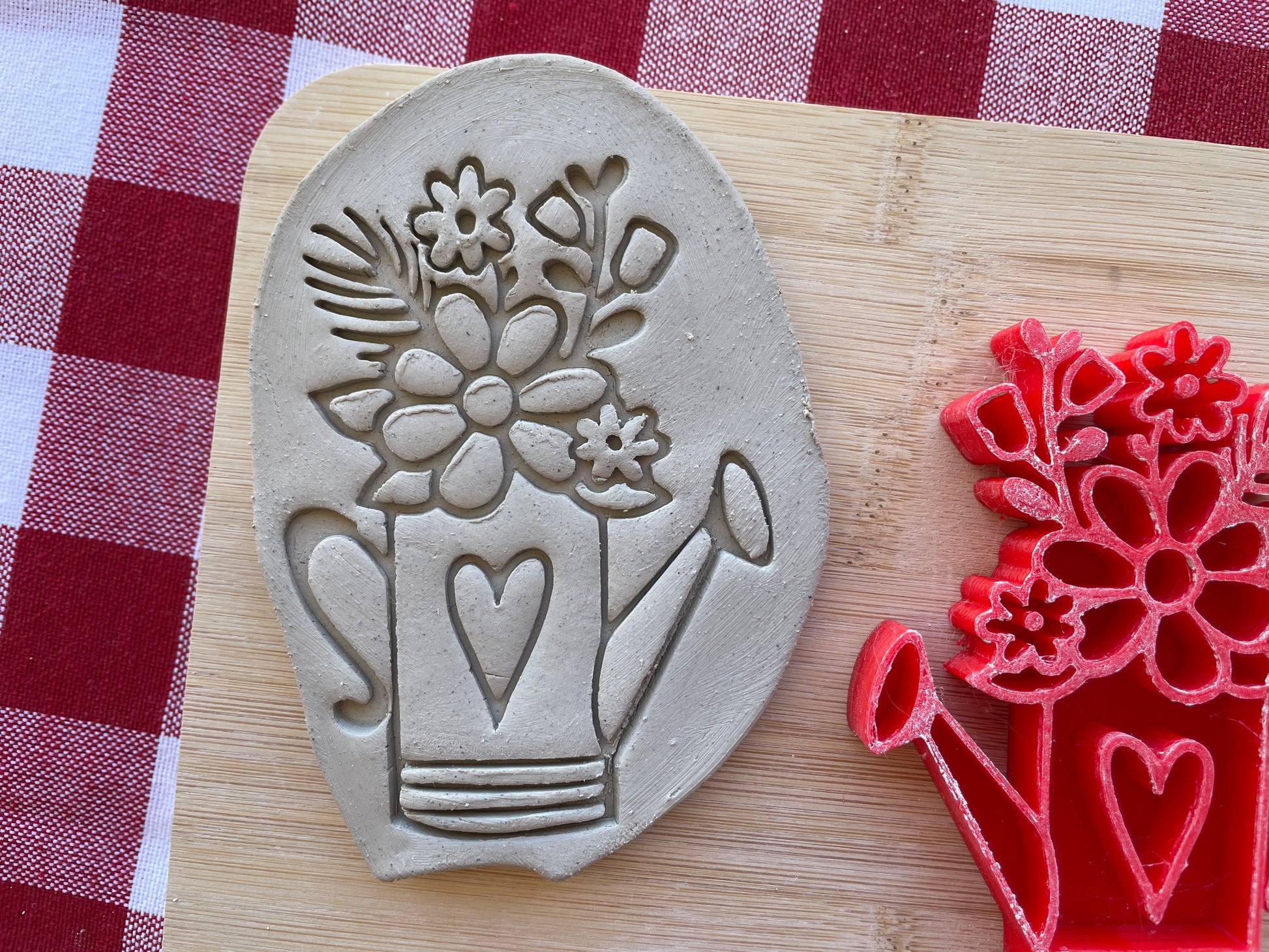 Watering Can and flowers Pottery Stamp - Spring themed February 2025 Mystery Box, multiple sizes available
